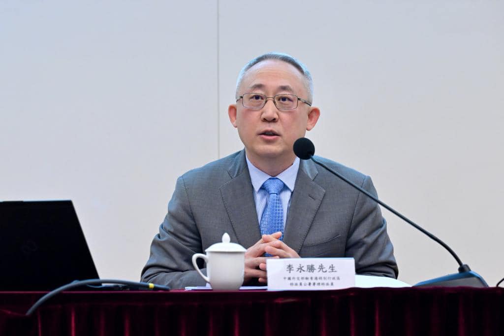 林定國表示,李永勝特派員是今日講題的不二人選,稱法律科班出身的李永勝,長期從事條約法律司工作,並曾派駐美國紐約任中國常駐聯合國代表團,曾以中國代表團成員身份在71屆聯大會議上,就「國內和國際法治」議題發言,清楚表明中國作為聯合國安理會常任理事國,始終堅定捍衛以《聯合國憲章》宗旨和原則為核心的國際秩序和國際體系,始終高度重視並嚴格遵守國際法,始終是國際法治的堅定維護者和積極建設者。