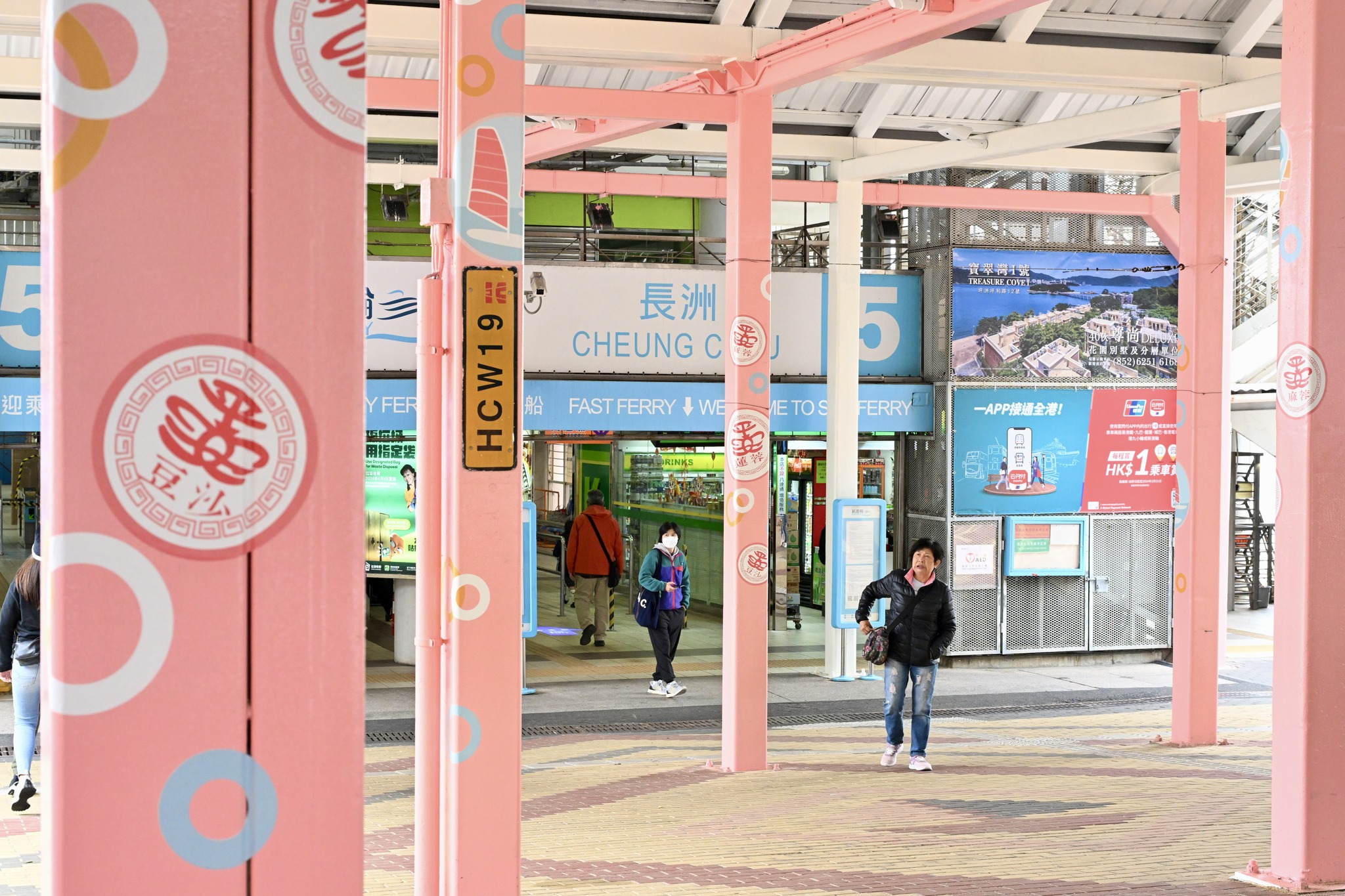而長洲碼頭的支柱,則用上營造喜慶節日氛圍的粉紅色和綴以長洲太平清醮的名物平安包。坪洲碼頭的支柱,就用上象徵坪洲是「秘密花園」的淡綠色,並配以火柴、牛角和齒輪圖案,向當地曾一度發展的火柴和牛皮廠等輕工業致敬。所有有蓋行人道的照明燈,亦由節能的LED取代原有的燈泡,令環境在晚上更加明亮。