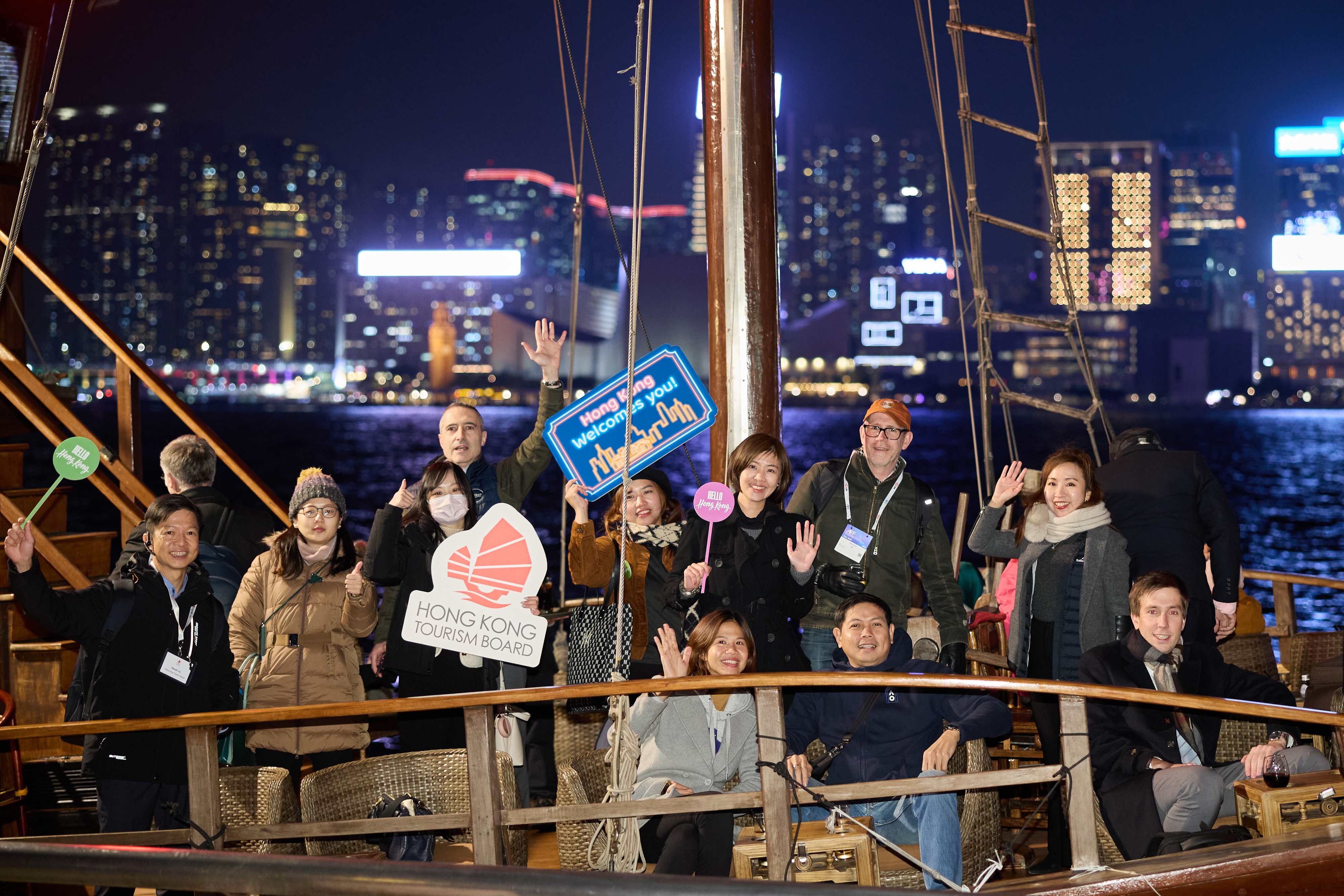 在旅發局安排下,一眾嘉賓昨日(24日)傍晚登上傳統中式帆船「張保仔號」,蕩漾於維多利亞海港中,一邊品嘗美酒,一邊陶醉於華麗浪漫的天際下,觀賞維港兩岸迷人景致。