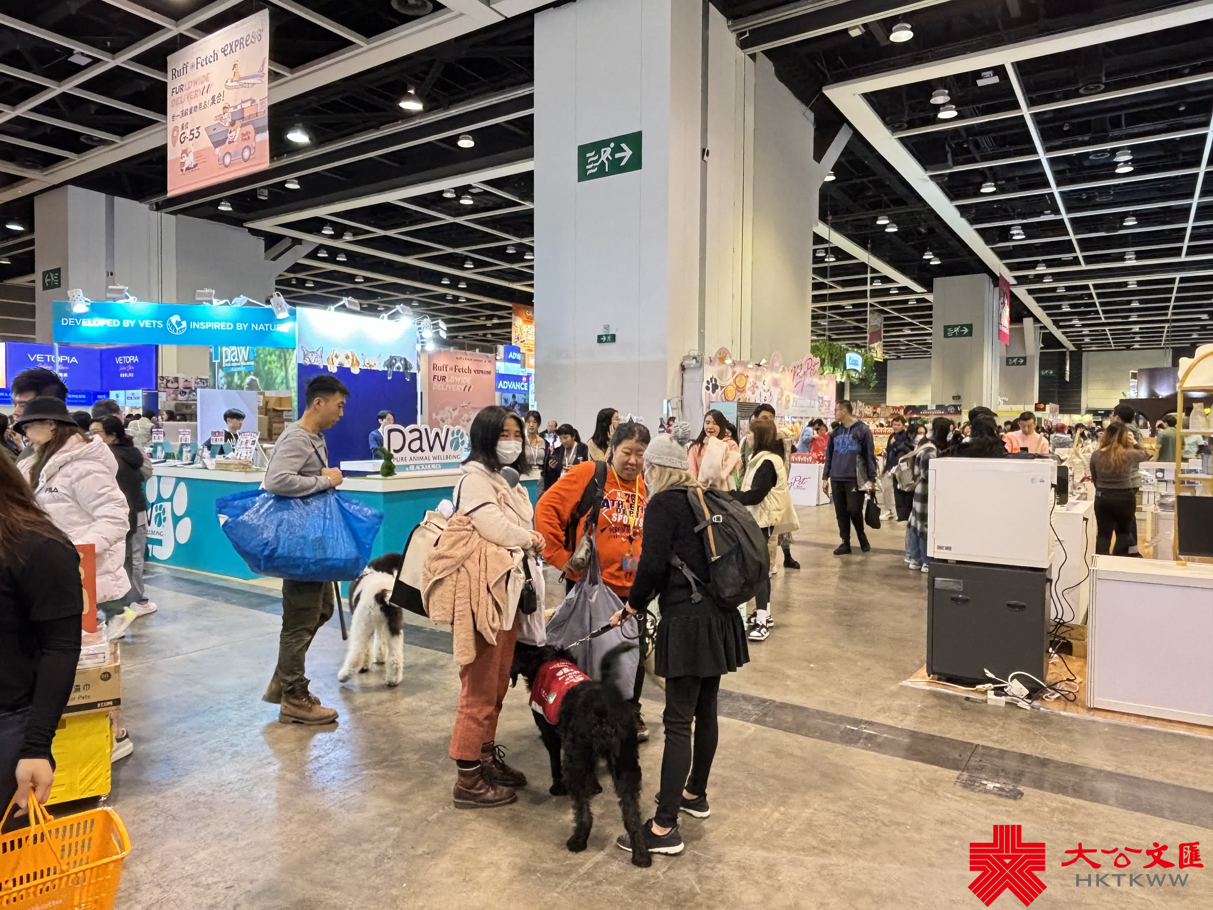 今次寵物節是歷來規模最大、展位最多,匯聚全港最多世界知名寵物食品和用品品牌。記者現場見到,展廳內可謂是摩肩擦踵,寵主們自帶「車仔」或帶同自家「主子」一同前來「血拚」。各攤位品類齊全,愛寵的「衣食住行」所需,這裏一應俱全。
