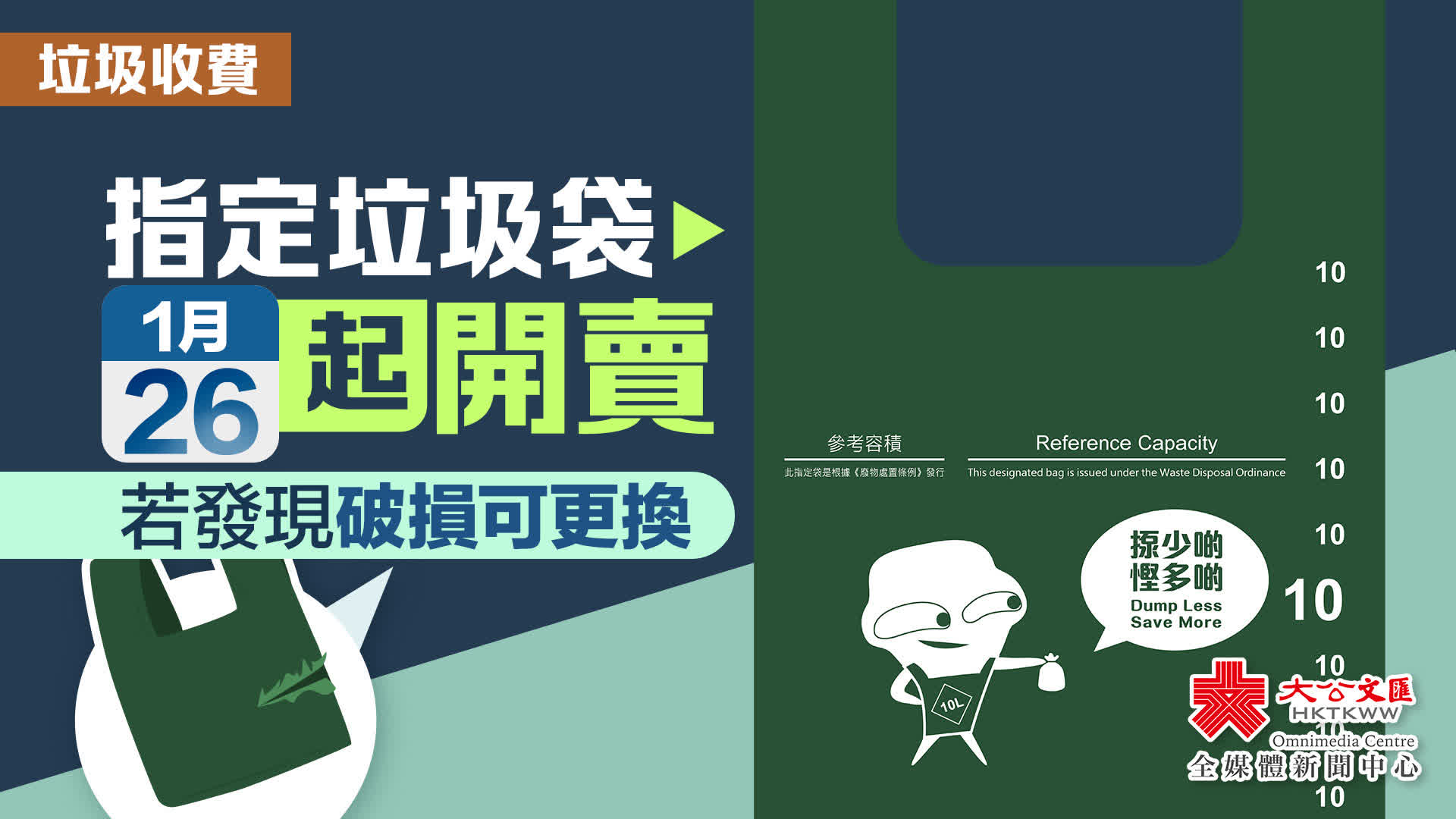 大公文匯全媒體報道,垃圾徵費延遲至8月才全面實施,指定垃圾袋今日(26日)起開賣。