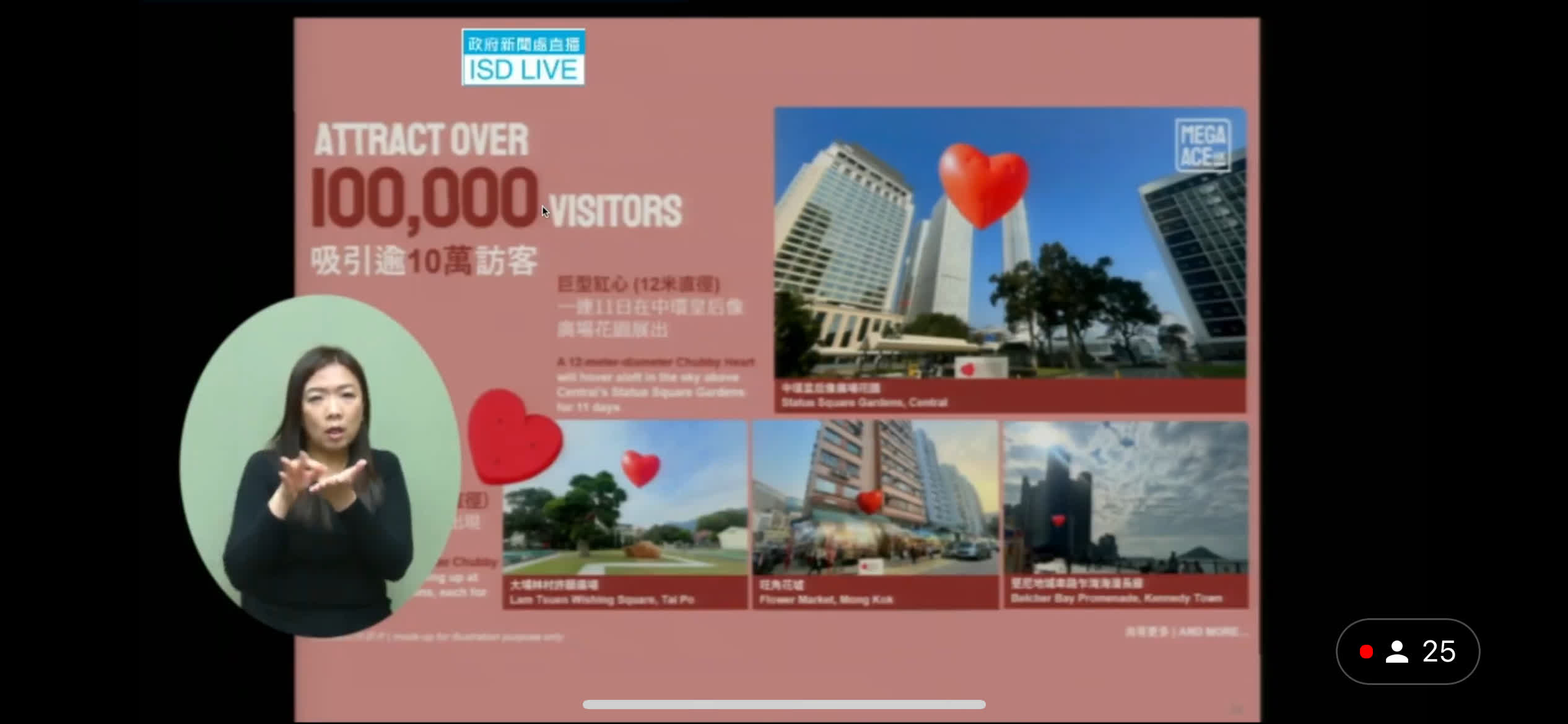 鄭志剛介紹,本港將於下月情人節至元宵節(2月14日至2月24日)期間,引入英國知名設計師Anya Hindmarch的巨型設計裝置Chubby Hearts,在中環皇后像廣場花園首次展出直徑約12米的巨型漂浮紅心,以及計劃於港九新界多個地標和旅遊景點包括旺角花墟、大埔林村許願樹廣場、堅尼地城卑路乍街海濱等,每天「快閃」展出直徑約3米的飄浮紅心,並與本地創意單位合作,鼓勵遊客和市民在「打卡」之餘,深度探索香港各區,展示香港獨特的浪漫和迷人景致,預計可吸引逾10萬人次參觀。