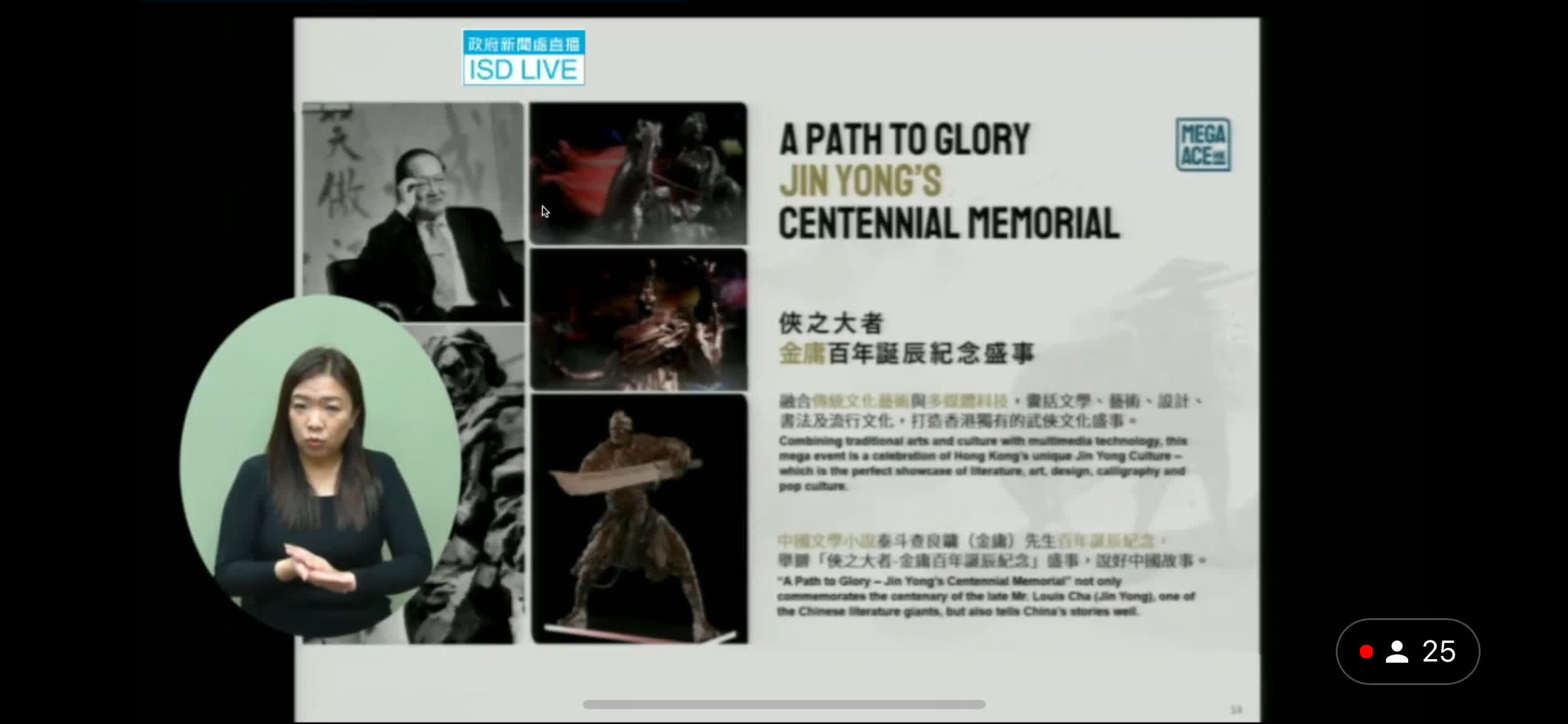 鄭志剛又指,今年為香港武俠文學泰斗查良鏞(金庸)百年誕辰,委員會資助舉辦「俠之大者——金庸百年誕辰紀念」盛事,會於3月15日至7月2日期間在中環愛丁堡廣場舉行大型江湖雕塑展,中國著名雕塑家任哲以金庸筆下角色,呈獻10件雕塑作品,包括《神鵰俠侶》楊過與小龍女、《射鵰英雄傳》郭靖與「老頑童」周伯通、《雪山飛狐》胡斐等。同場還重現《射鵰英雄傳》的蒙古包,結合數碼創意科技介紹小說的武俠角色,以沉浸式創新手法全新投入「飛雪連天射白鹿,笑書神俠倚碧鴛」的武俠世界。香港文化博物館亦會於3月15日至10月7日期間,舉辦金庸武俠人物雕塑展,展品亦是由任哲所創作,並輔以多媒體展示方式,歡迎旅客屆時到訪不同地點,拍照「集郵」更多金庸角色。他指,預計此活動可吸引46萬訪客。