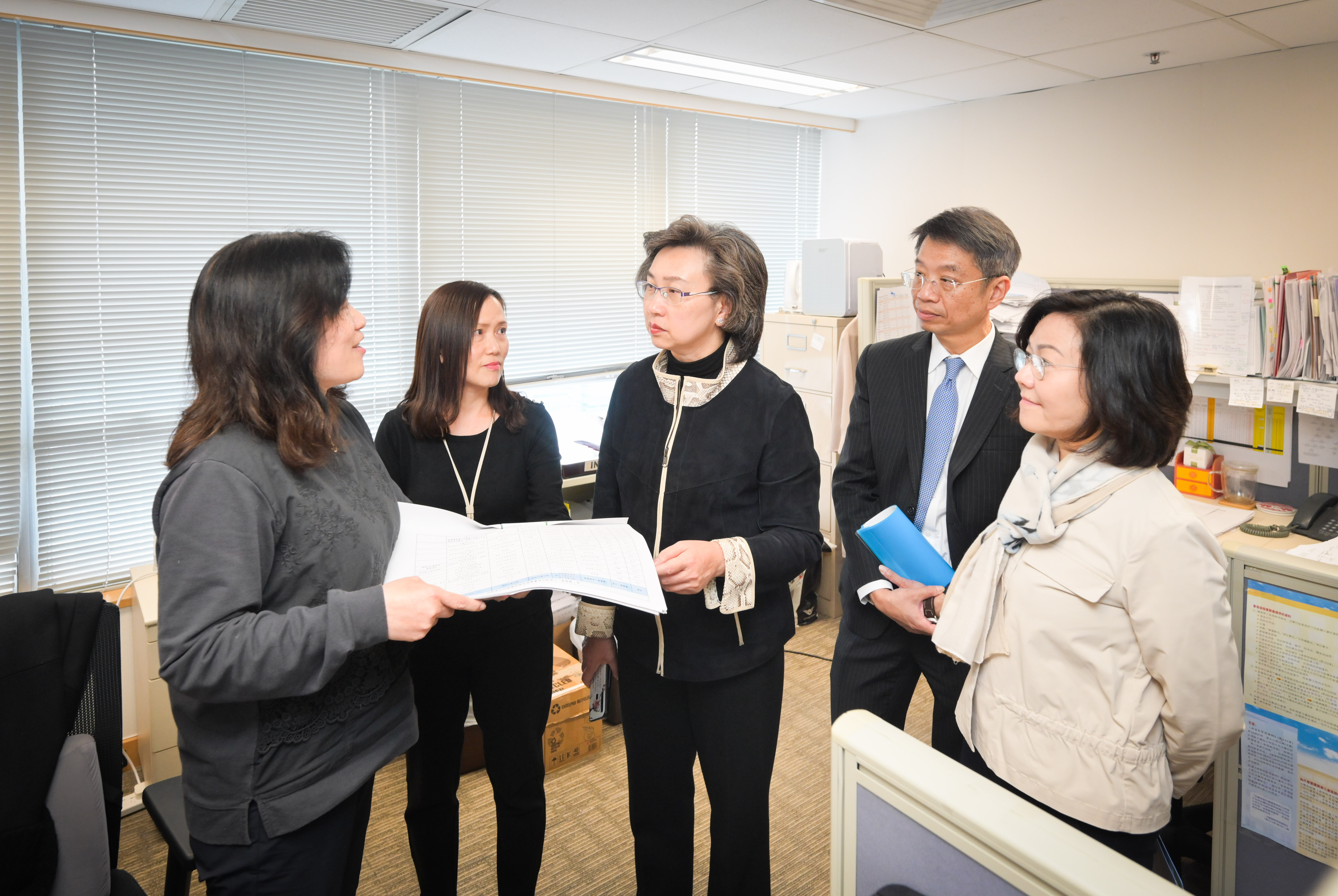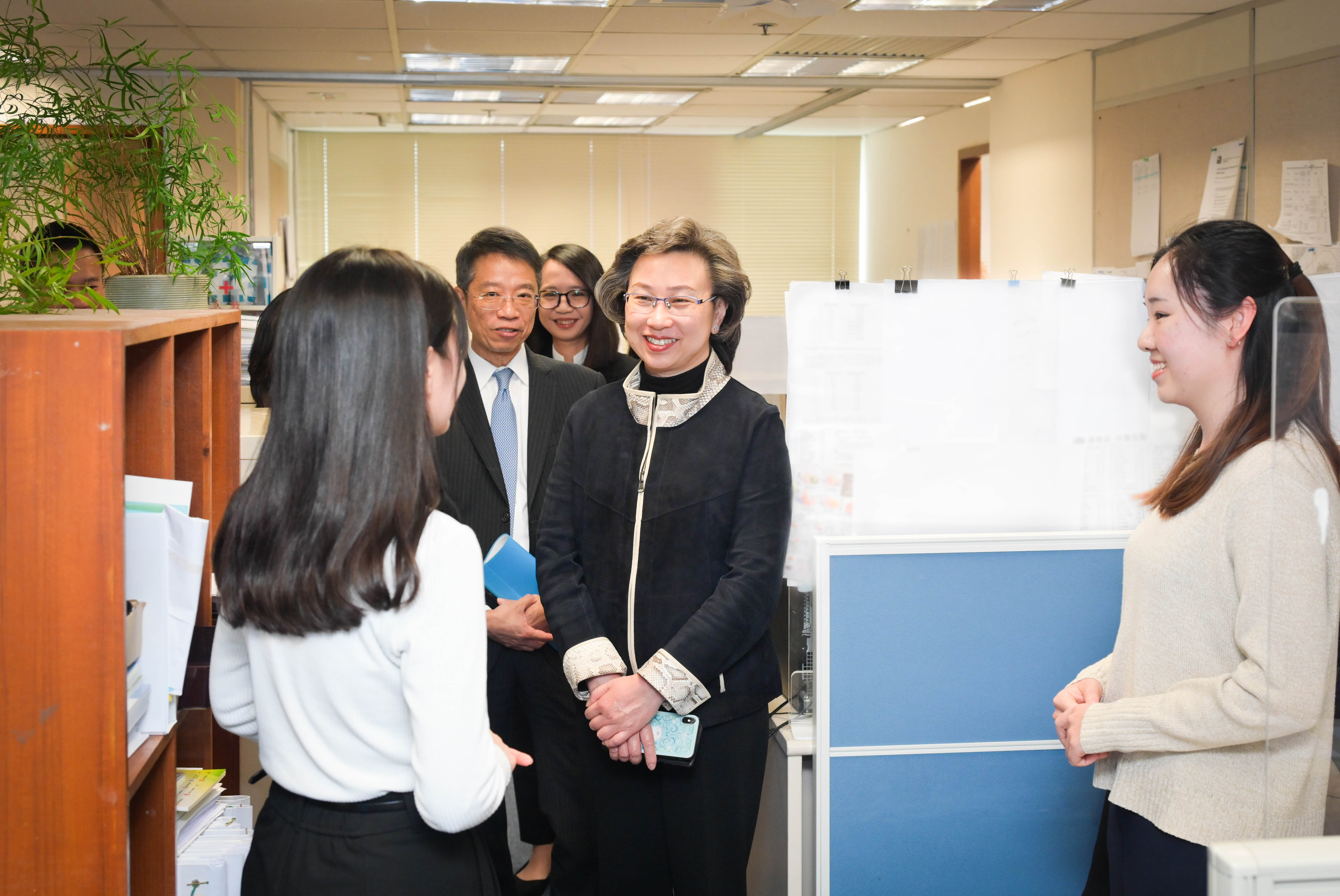 她亦與部門各職系的員工代表會面並交換意見。楊何蓓茵讚賞他們竭力為市民服務,感謝他們在上月區議會選舉緊守崗位,並勉勵他們繼續積極推展地區工作,回應市民訴求。