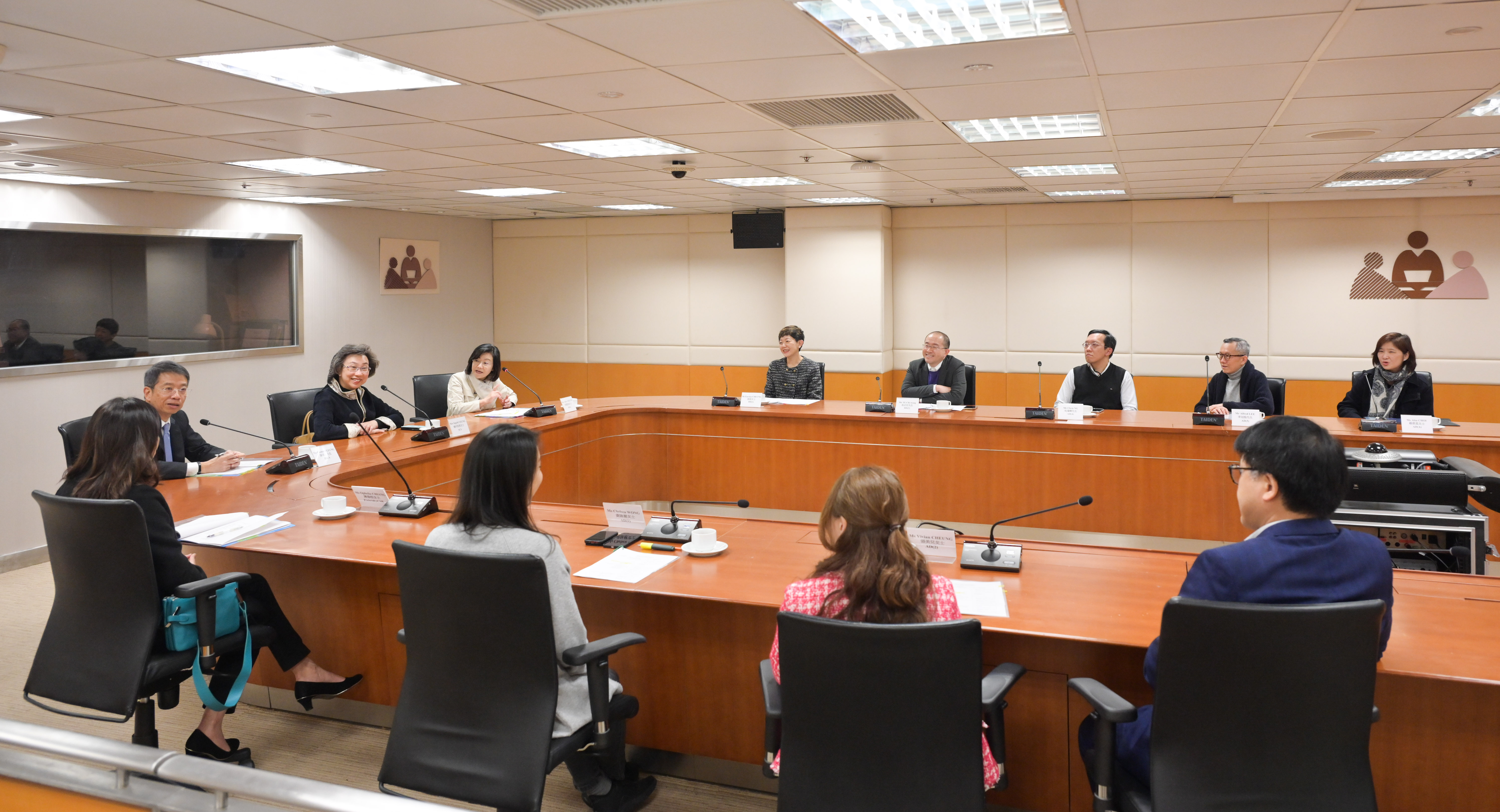 楊何蓓茵和公務員事務局常任秘書長梁卓文,與民政總署署長張趙凱渝及部門首長級人員會面,聽取部門推動地區治理工作的最新情況。