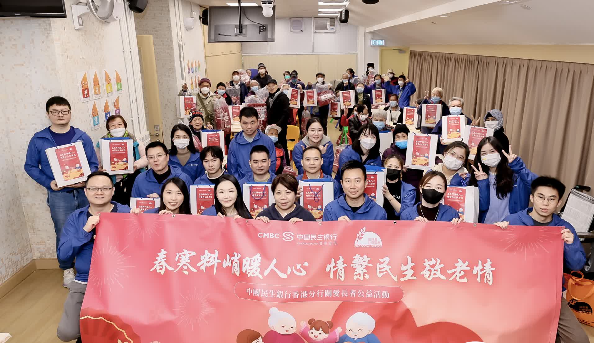 大公文匯全媒體報道,中國民生銀行香港分行聯合香港循理會今日(27日)舉辦「春寒料峭暖人心 情系民生敬老情」新春長者關懷公益活動,與長者們歡聚一堂,預慶龍年春節,為社區弱勢社群長者送去節日的慰問與祝福。民生銀行香港分行行長助理鍾洪宇、香港循理會社會服務部總幹事黃淑貞出席了活動。