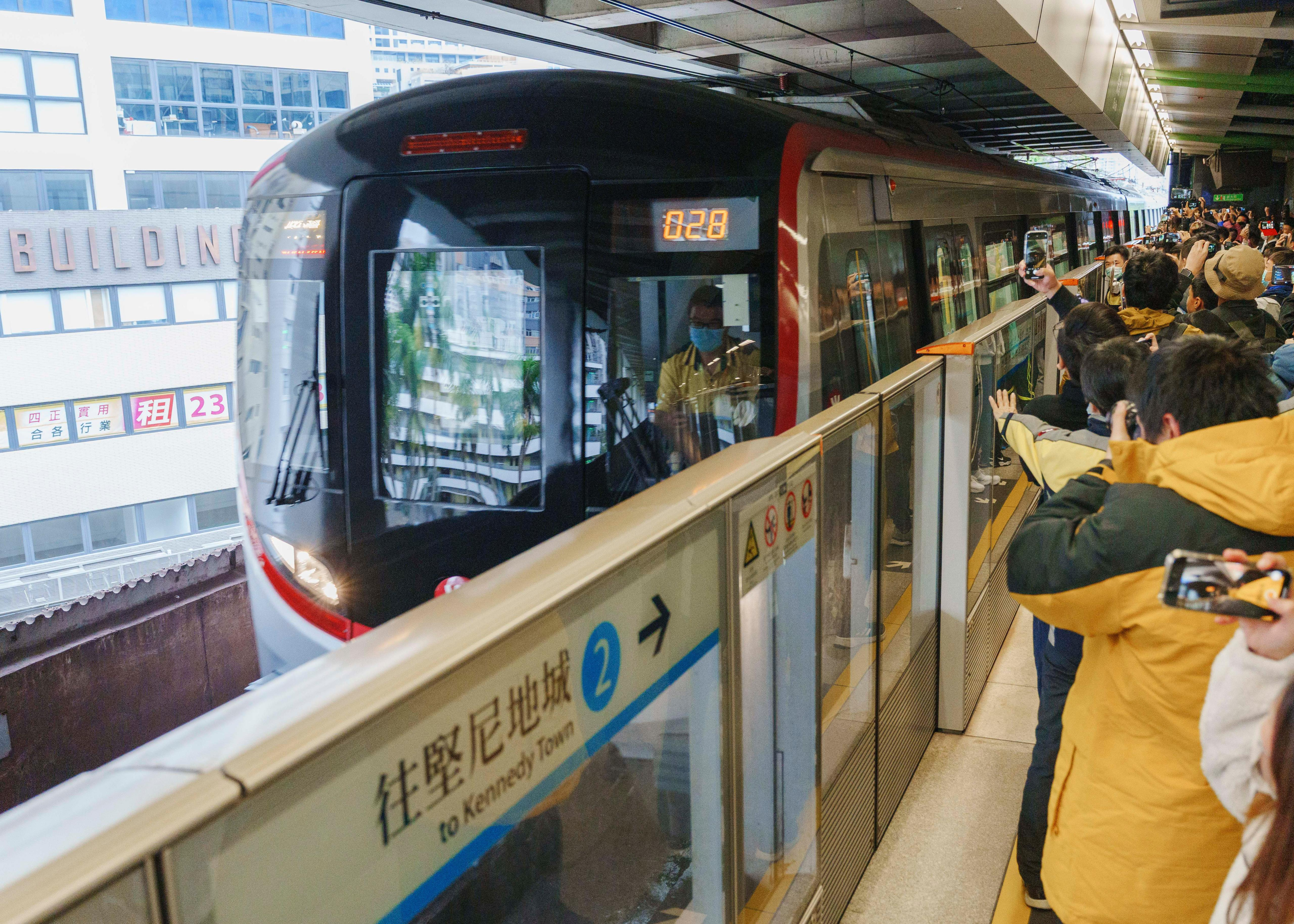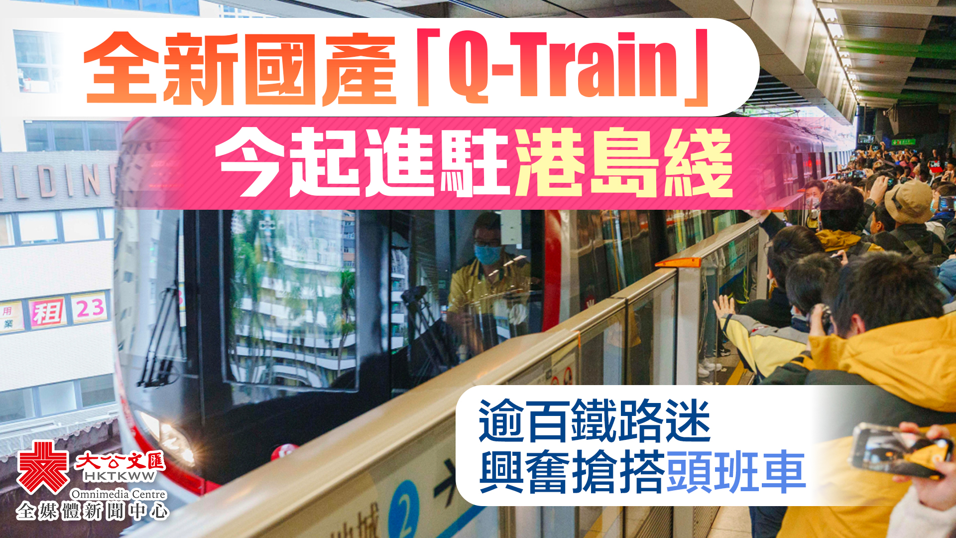 大公文匯全媒體報道,港鐵新購入的中國青島四方製列車(Q-Train),今日(28日)起在港島綫投入服務,吸引大批鐵路迷一早到場等候乘搭及拍照。早上9時47分,首班特別班次列車由柴灣站開出,前往堅尼地城站方向。逾百名「鐵路迷」提早到月台等候列車,情緒高漲。