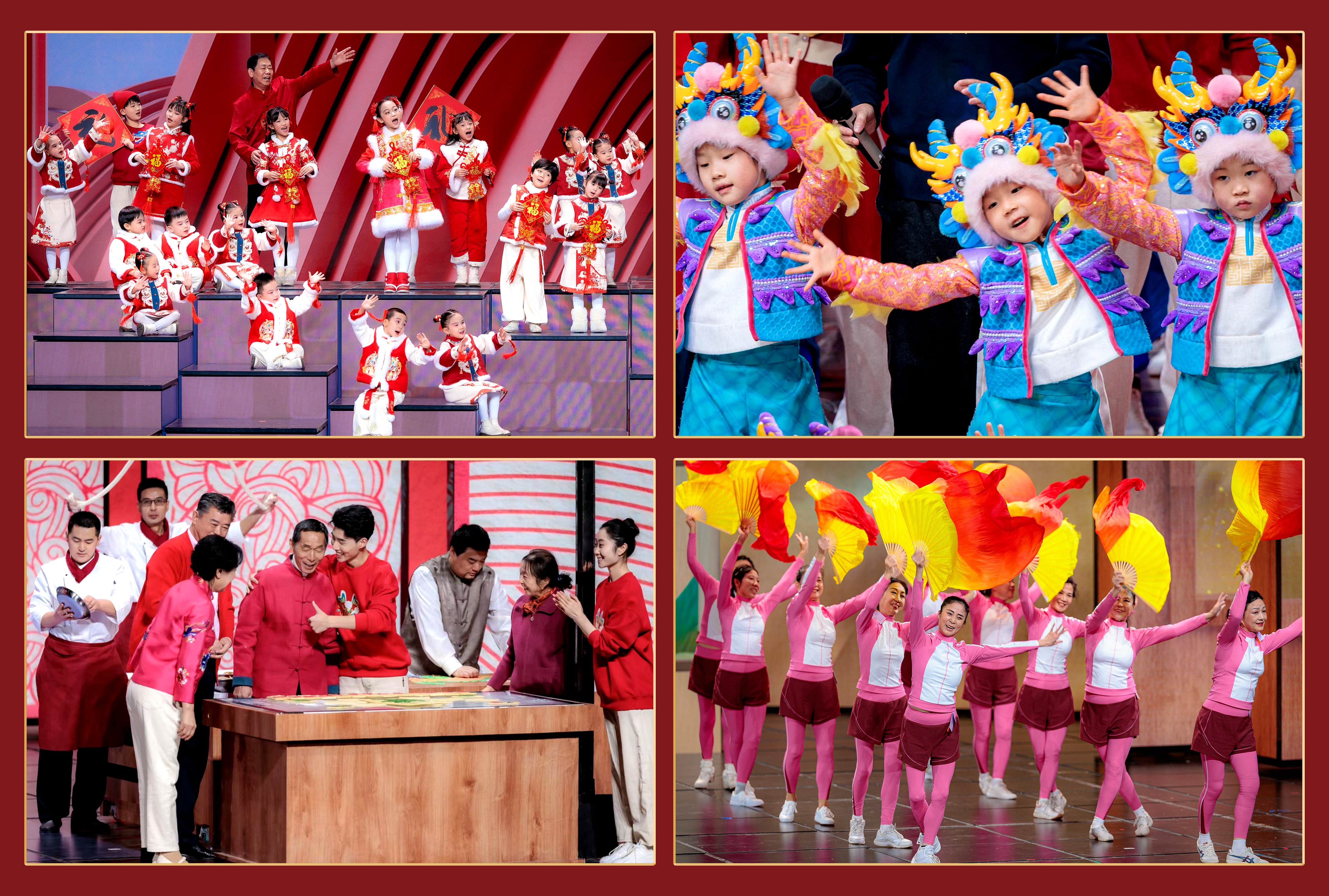 中央廣播電視總台介紹,春晚節目組傾心創作的創意年俗節目展現豐富多樣的中華飲食文化,寄寓龍年五穀豐登、別開生面;傳統「八段錦」的創新演繹,在活力四射的情境中為廣大受眾送上健康無恙、福氣常在的美好祝願。