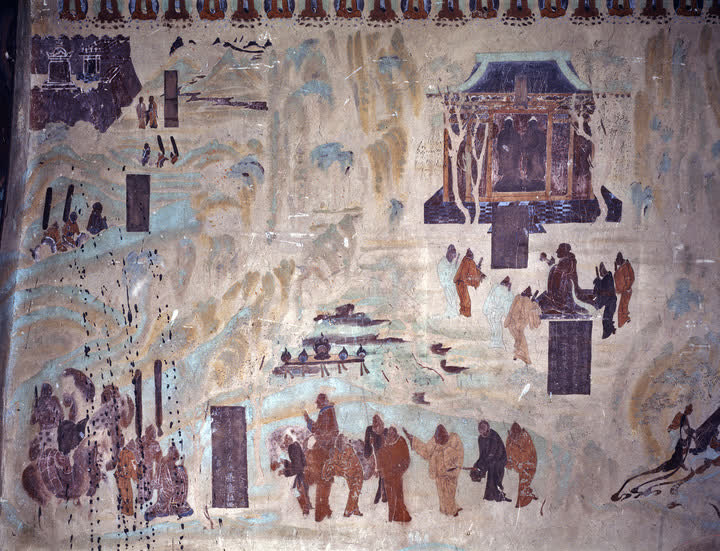 今天,兩晉南北朝至隋唐的畫作絕大多數已經失傳。這種色彩明快的唐代青綠山水畫,是莫高窟為後世留存的一段珍貴文化記憶。