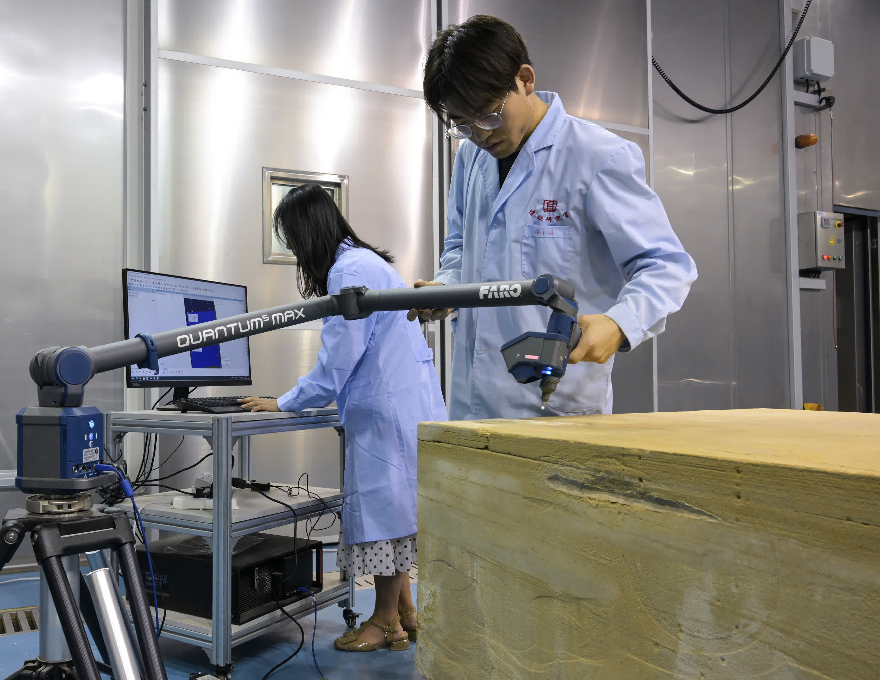 實驗室自2020年正式投運,分為夏季倉、冬季倉和風雨倉,可模擬-30℃到60℃、10%至90%相對濕度的環境。從莫高窟等地取來的土石樣品將經受各種氣象條件的考驗,從而揭示石窟寺風化的奧秘,有針對性地採取保護措施。