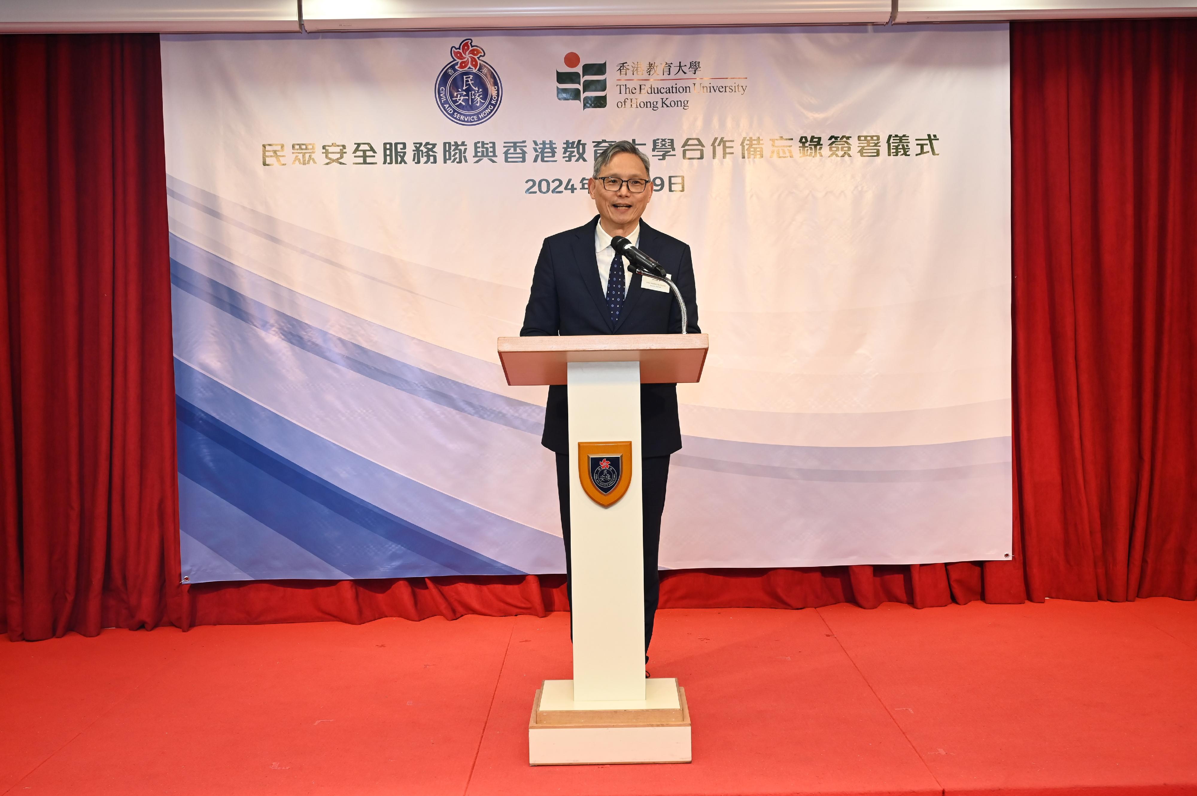 李子建表示,教大一直致力推行全人教育,促進青年發展。他相信民安隊與教大能透過是次合作善用彼此優勢,共同培育立足香港、面向國家、具備國際視野的青年人才。