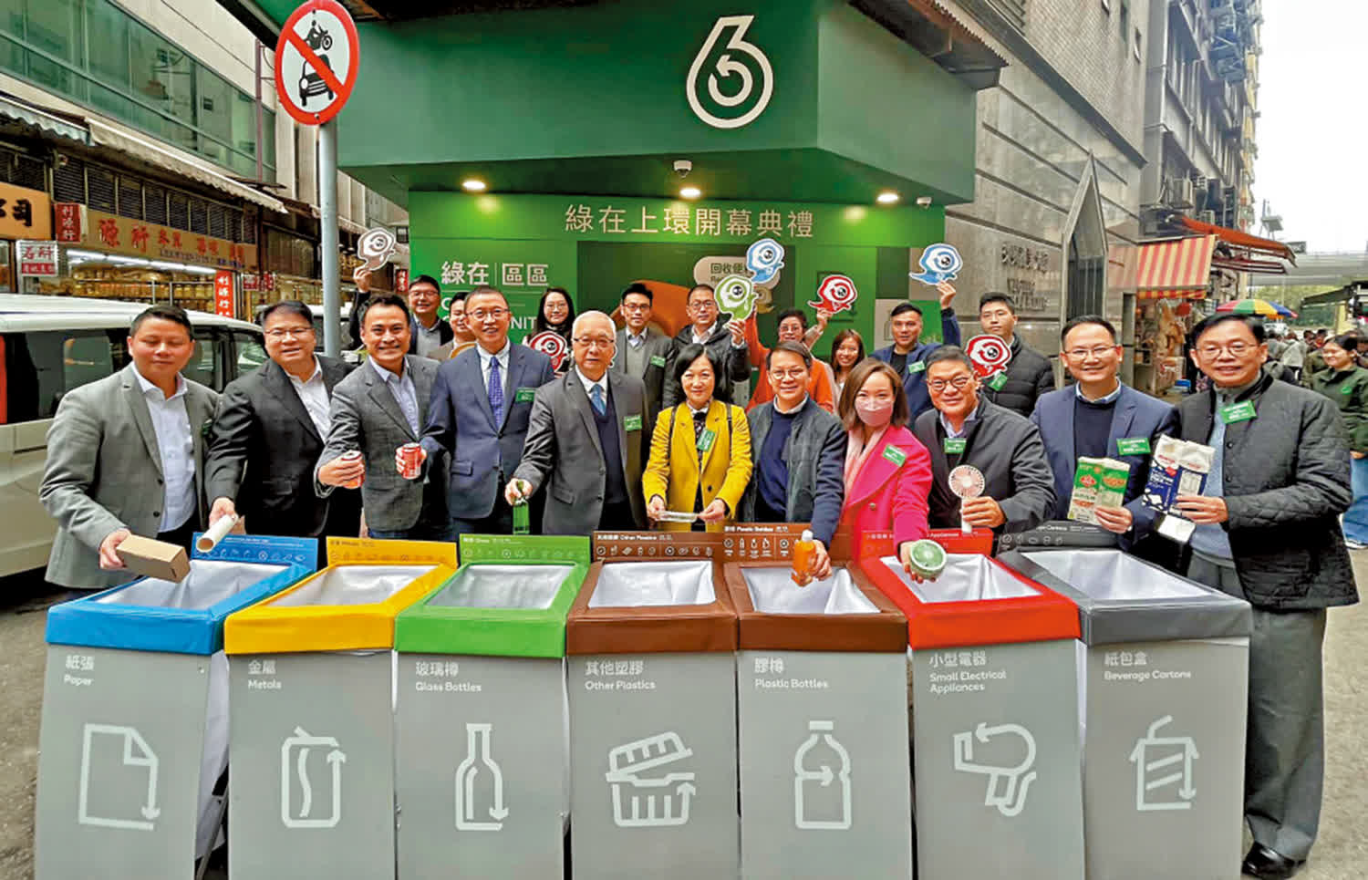 (大公報 記者 黃知行)綠在上環是首批回收便利點的其中之一,早於2020年開始投入服務,去年進一步優化設施,以提供更優質服務。環境及生態局局長謝展寰昨日與一眾立法會議員出席綠在上環的開幕典禮,見證全新面貌的回收點繼續為上環街坊提供回收服務。綠在區區服務現時覆蓋全港80%單幢樓宇,包括「三無大廈」。