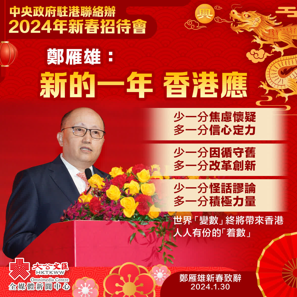最後,鄭雁雄祝福香港龍年大吉祥,祝福大家「龍年事事順,財運處處旺」,一切美好如期而至。