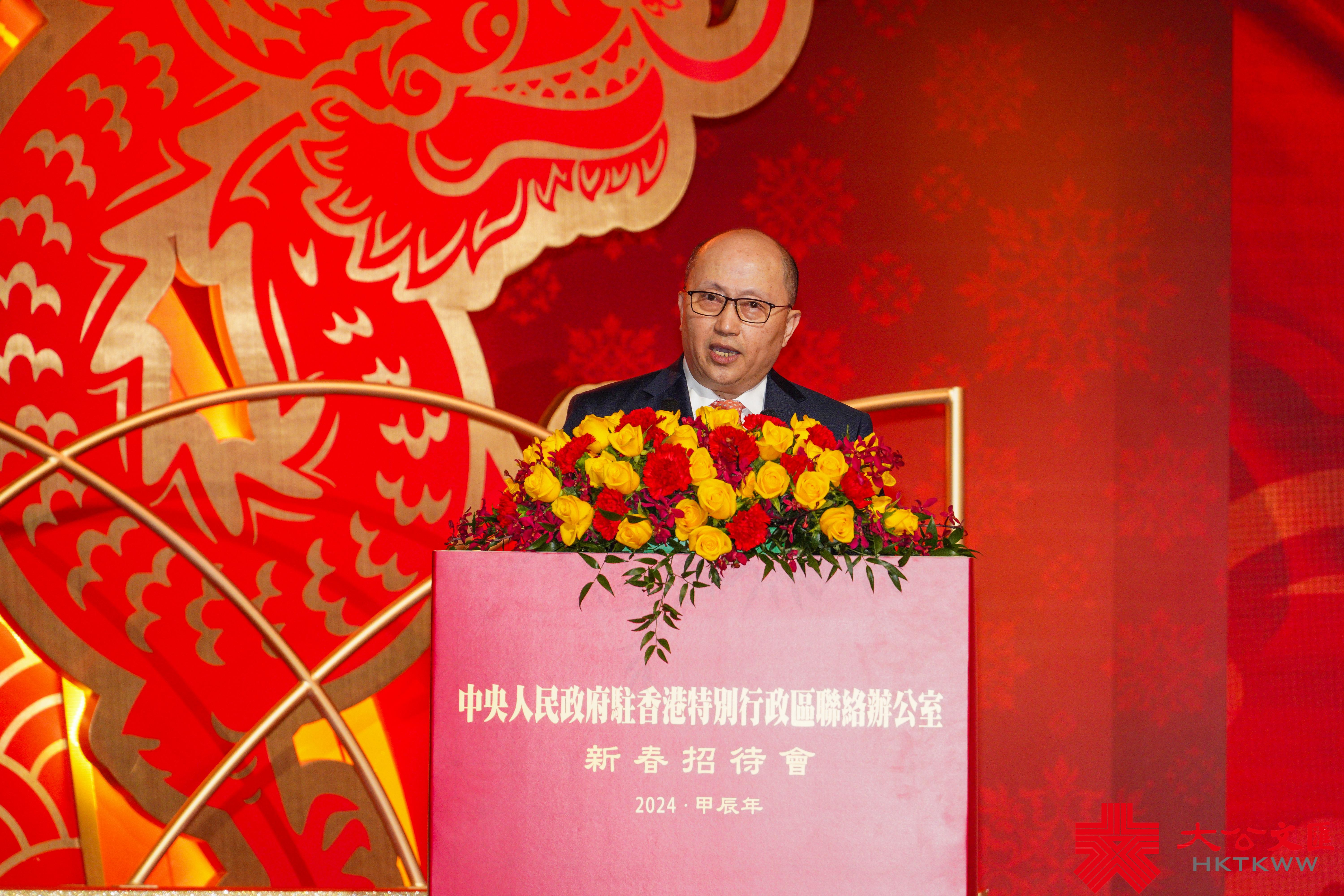 大公文匯全媒體報道,中央政府駐港聯絡辦2024年新春招待會今日(30日)在香港會議展覽中心舉行。中央政府駐港聯絡辦主任鄭雁雄、香港特區行政長官李家超發表致辭,全國政協副主席梁振英等嘉賓出席。