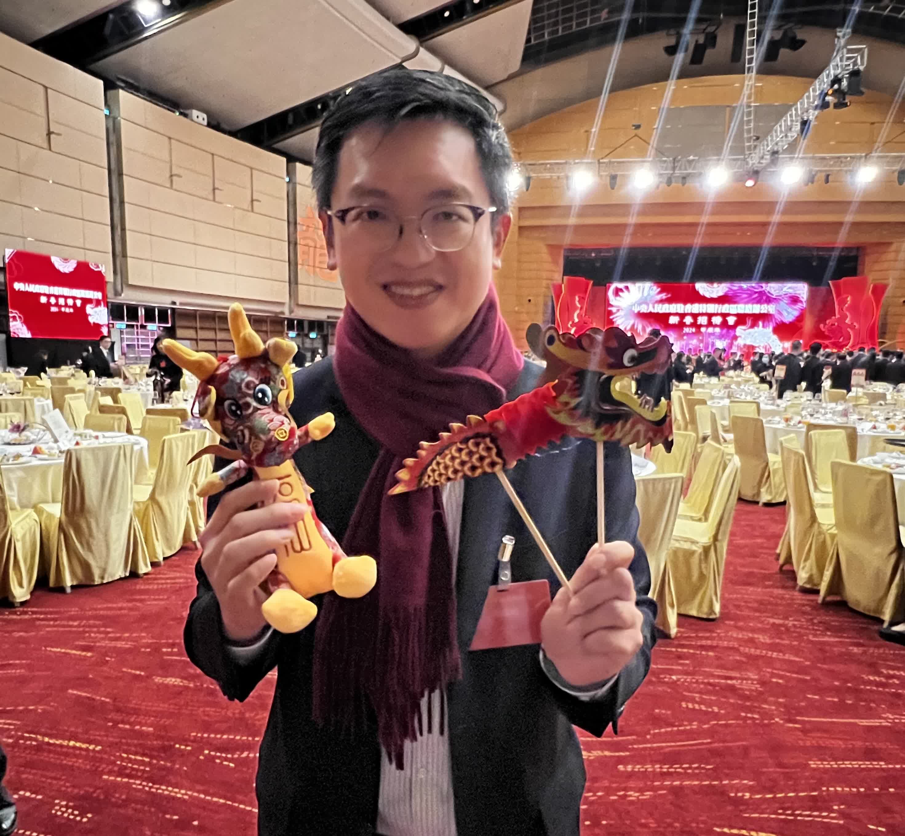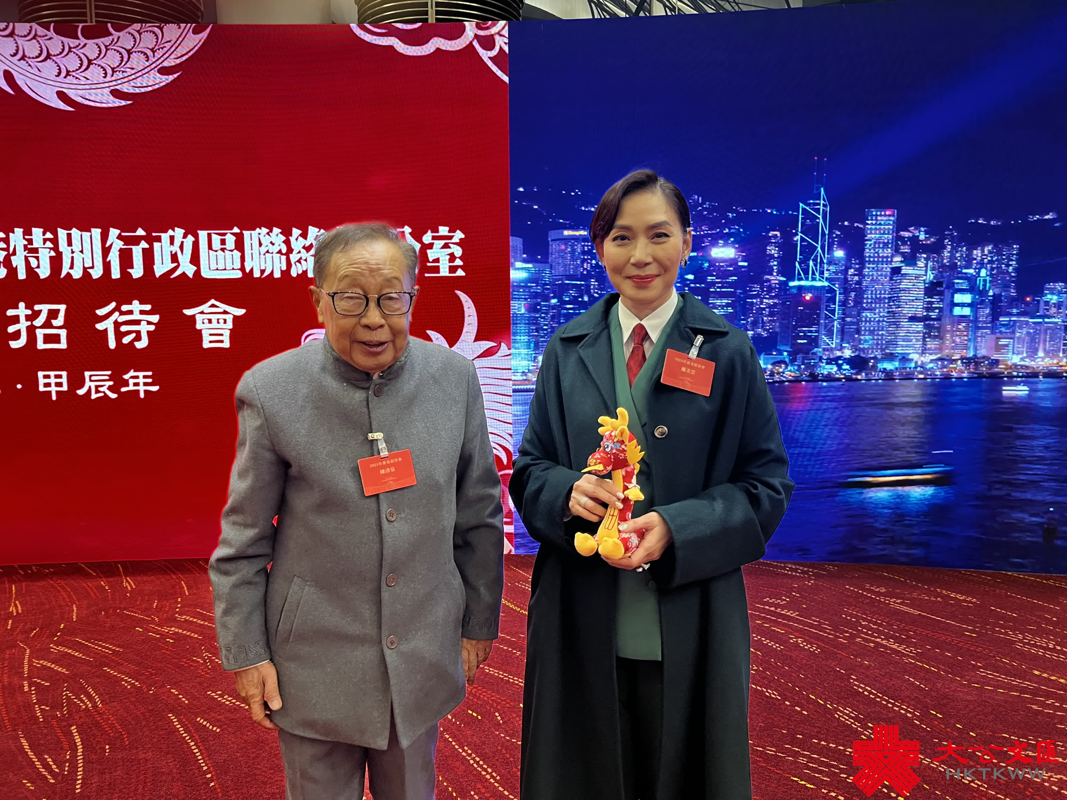 (大公文匯全媒體記者 周傾芫)迎龍年新春,做龍的傳人——在中樂團合奏《龍的傳人》的悠揚曲調中,中央政府駐港聯絡辦2024年新春招待會今(30日)晚在香港會議展覽中心隆重舉行。行政長官李家超和中聯辦主任鄭雁雄出席新春招待會並致辭。
