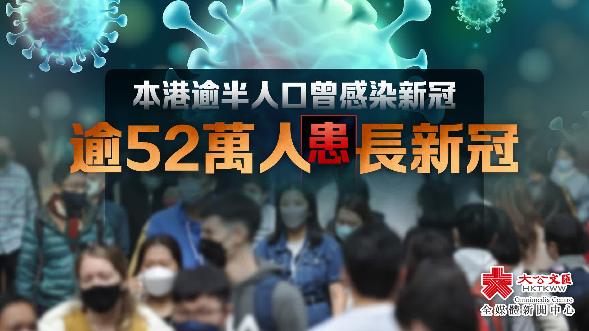 調查顯示,本港約2858700人在統計進行至少3個月前曾感染新冠病毒,其中約18.4%人士持續兩個月出現長新冠相關症狀,33.7%出現長新冠症狀人士表示,症狀已對日常生活造成困擾。