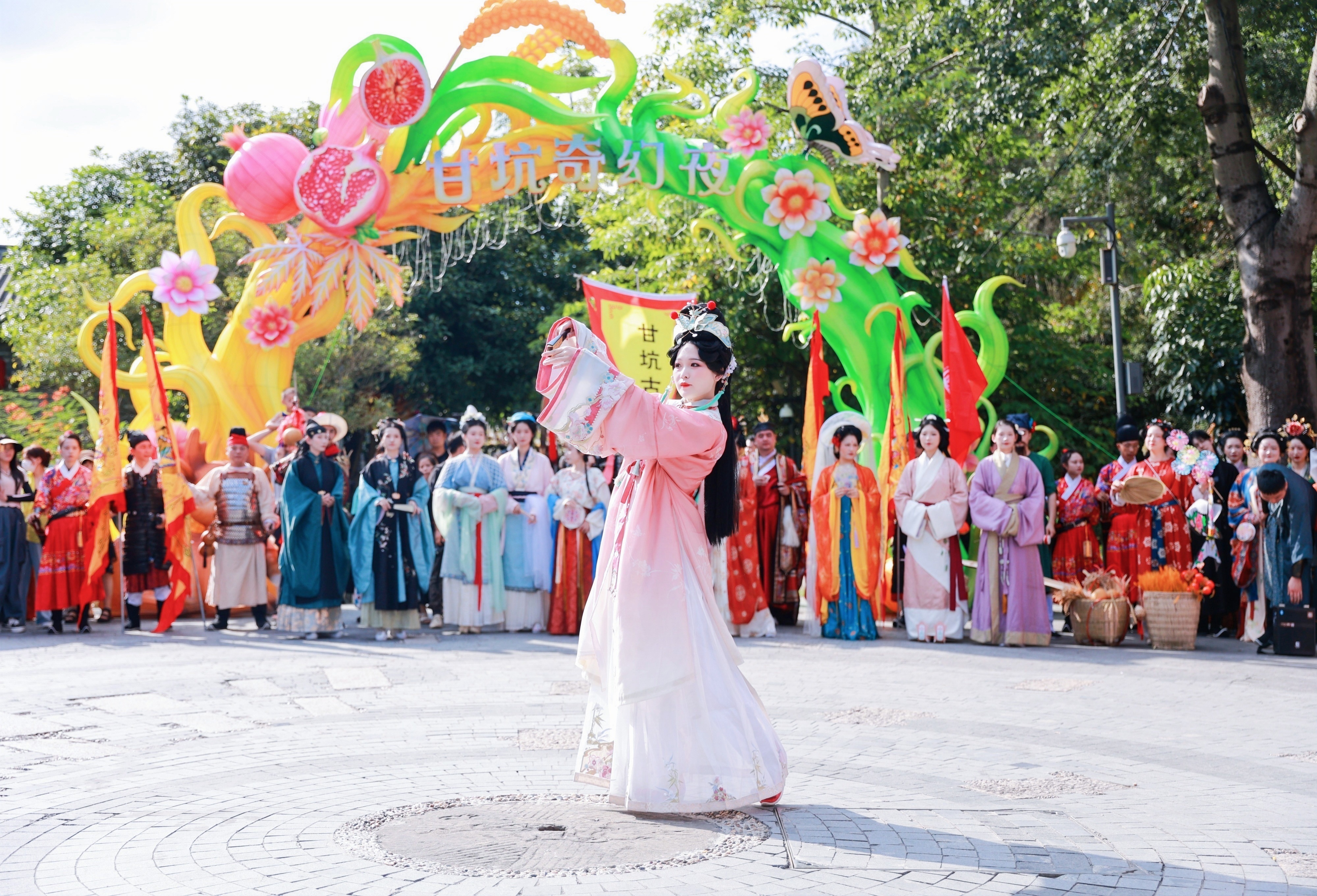 當漢服華裳與百年古鎮相遇,遊人也與傳統文化實現了一場雙向奔赴的時光之約。春節期間,在古樸靜謐的鳳凰谷裏,將舉行「迎春雅集遊園會」,其提取宋式嶺南迎春生活五趣,以吃茶去、花間戲、筆墨舞、裙袂風、琴瑟鳴等五項體驗內容,再現傳統新春雅趣。此外,在鳳凰谷的長街處還打造了春節特色古風市集,匯集發簪、纏花、古風文創等10家商戶,重現古代熱鬧街景,讓人置身其中恍若一秒穿越時光,沉浸式感受傳統年味。