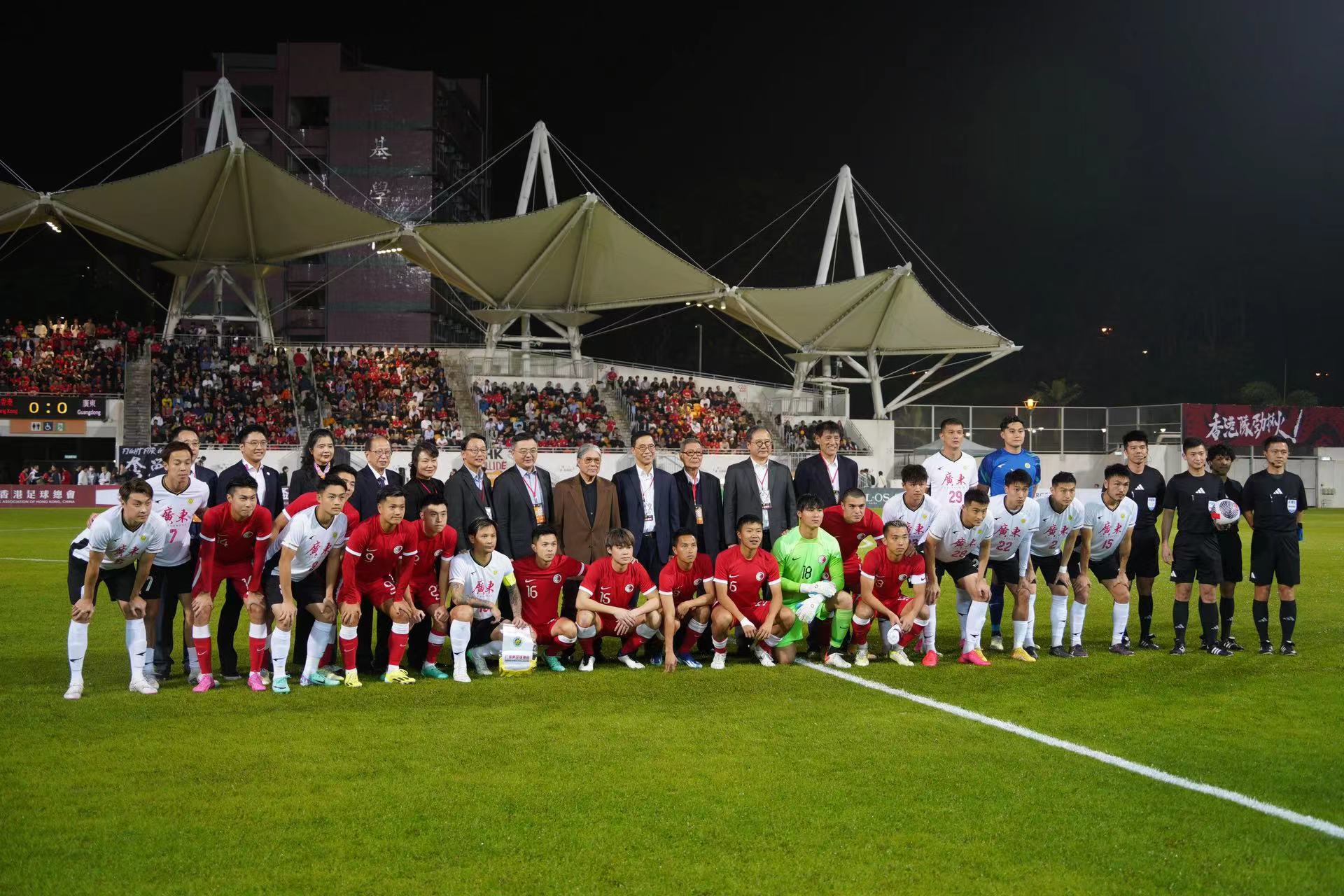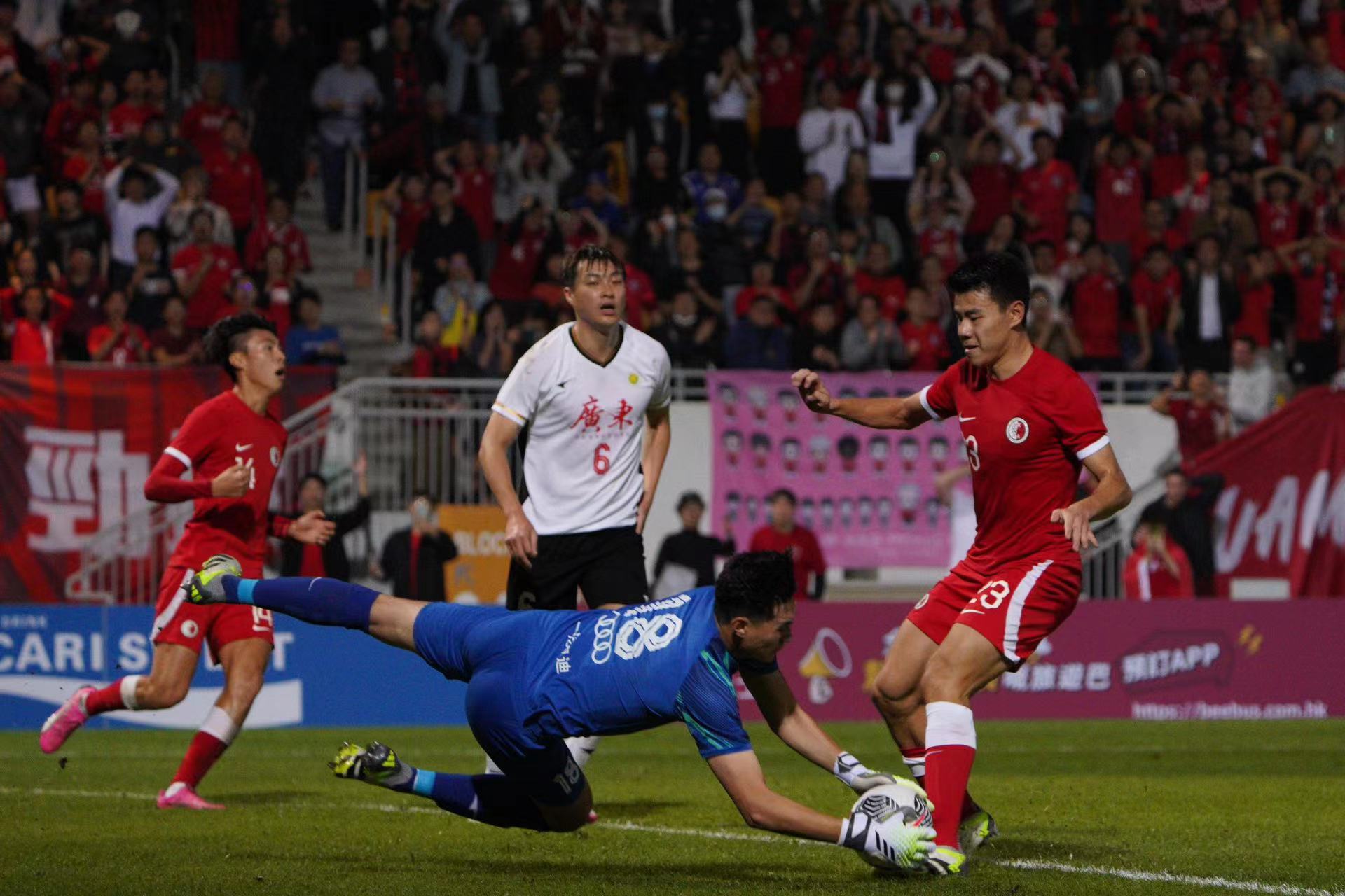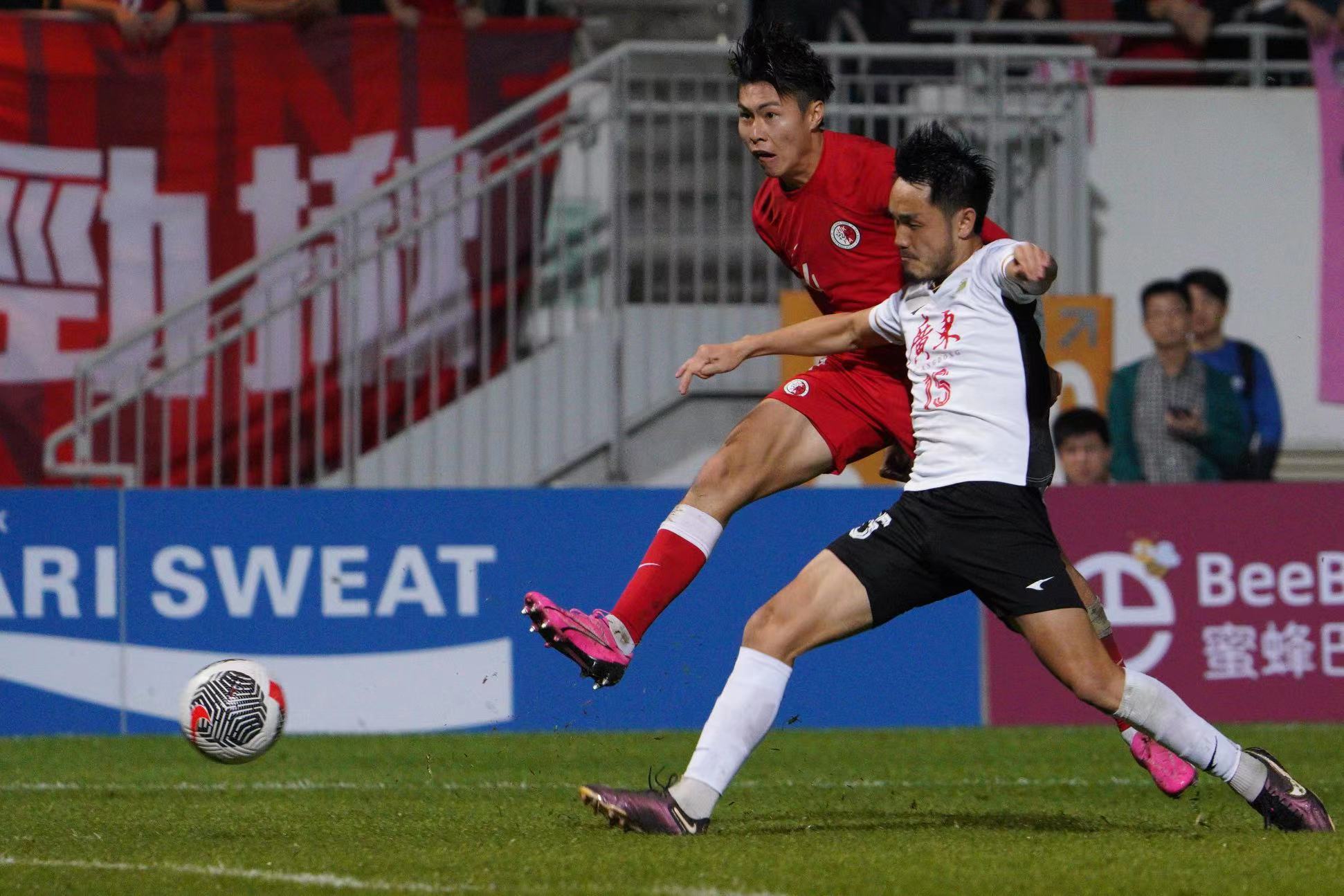 大公文匯全媒體報道,第42屆省港盃首回合,香港隊今日(31日)晚上率先在旺角大球場迎戰廣東隊。在全場由近5000名香港球迷組成的「紅海」齊心打氣下,港隊由陳肇鈞的世界波先開紀錄,下半場再由潘沛軒射入空門,以2:0優勢迎接下月7日在廣州越秀山舉行的次回合賽事。