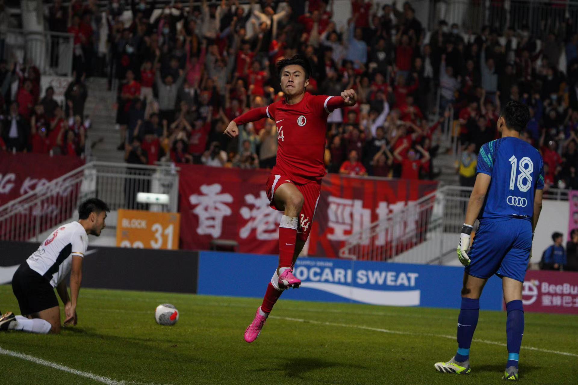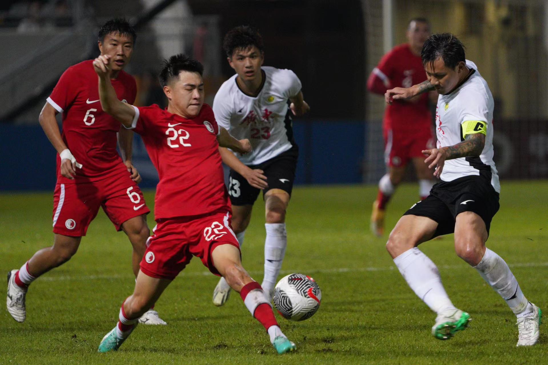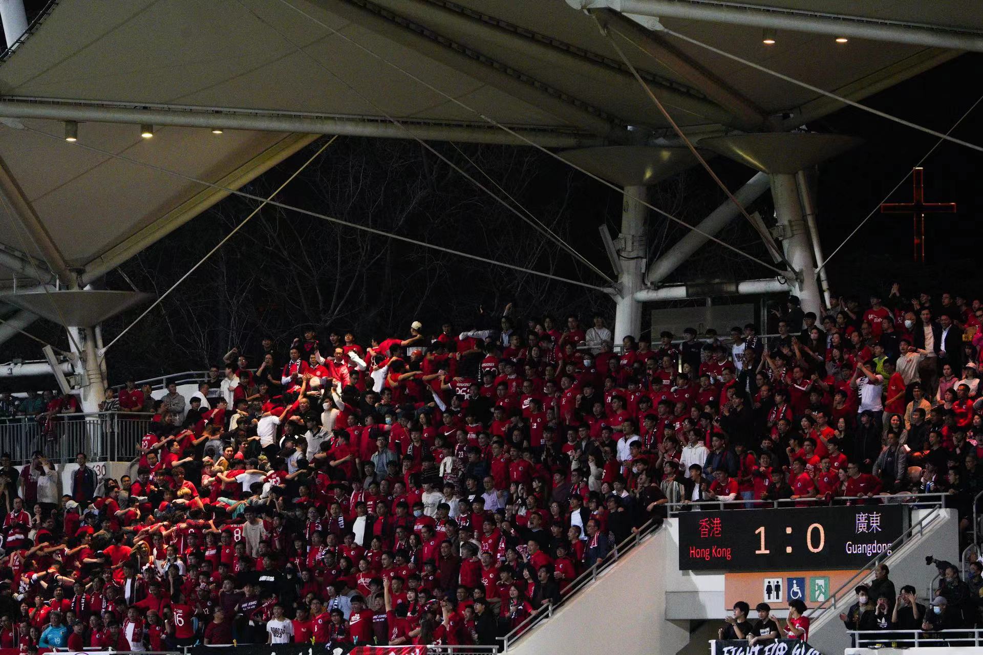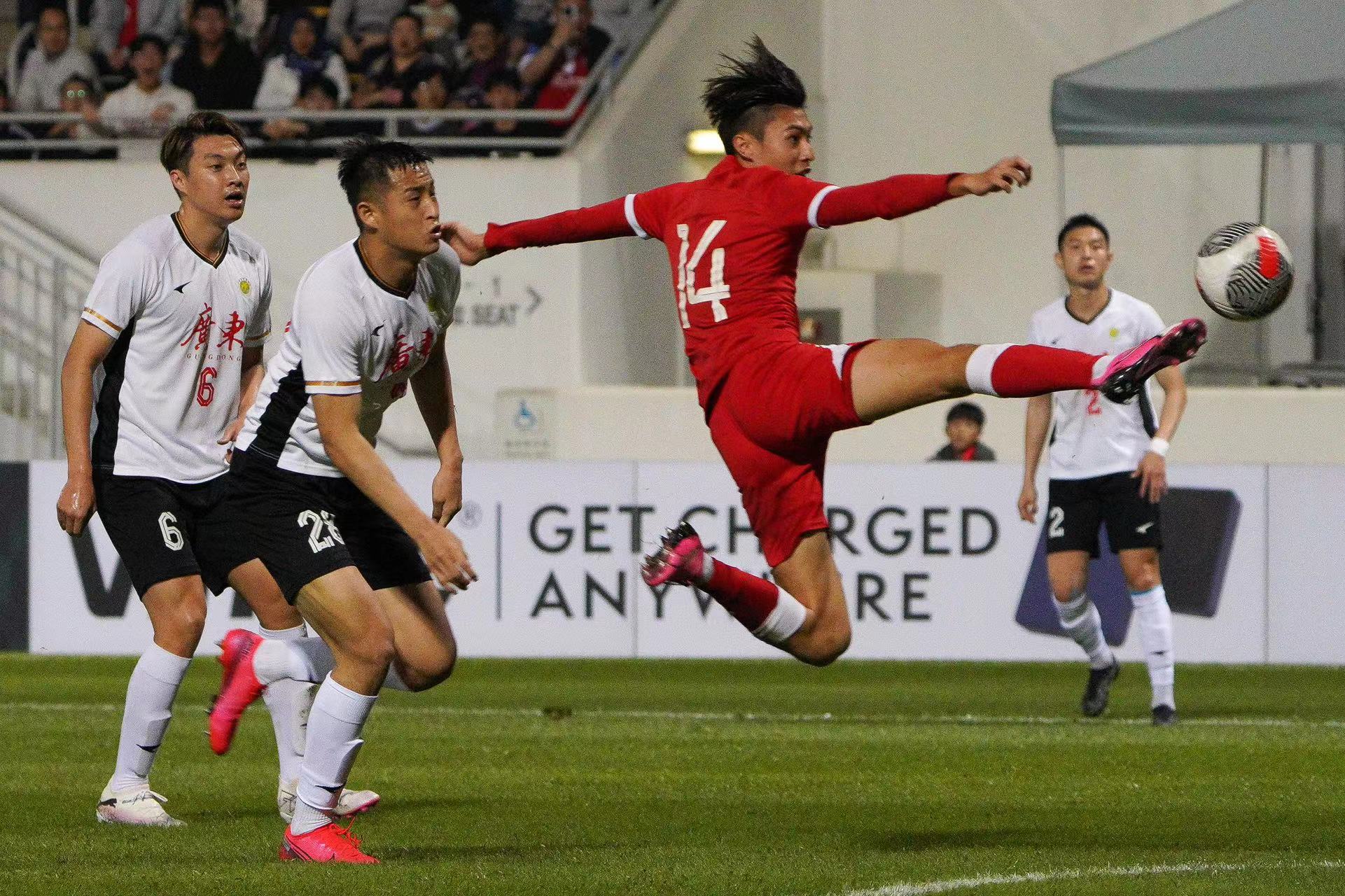 大公文匯全媒體報道,第42屆省港盃首回合,香港隊今日(31日)晚上率先在旺角大球場迎戰廣東隊。在全場由近5000名香港球迷組成的「紅海」齊心打氣下,港隊由陳肇鈞的世界波先開紀錄,下半場再由潘沛軒射入空門,以2:0優勢迎接下月7日在廣州越秀山舉行的次回合賽事。