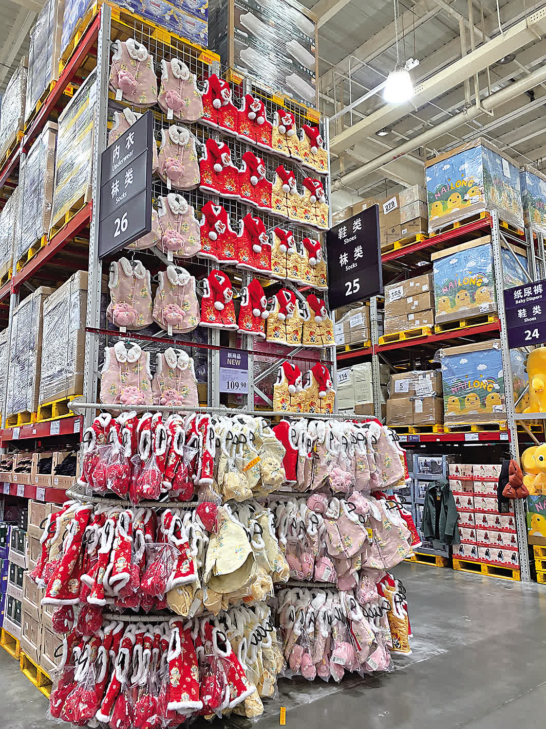 著名倉儲超市山姆在春節前也緊追潮流,上架兩款新中式童裝,其中一款女童馬面裙套裝銷量火爆。有顧客告訴記者,一周前在山姆超市看到馬面裙套裝非常喜歡,這周帶着孩子去買,心儀的粉色套裝已經銷售一空,僅剩幾套。「黃色的還有碼趕緊買吧,前幾天周末兩天裏,粉色套裝就賣得只剩幾套了,也不會再上貨了。再過幾天,估計黃色也要斷碼斷貨了。」現場工作人員說。