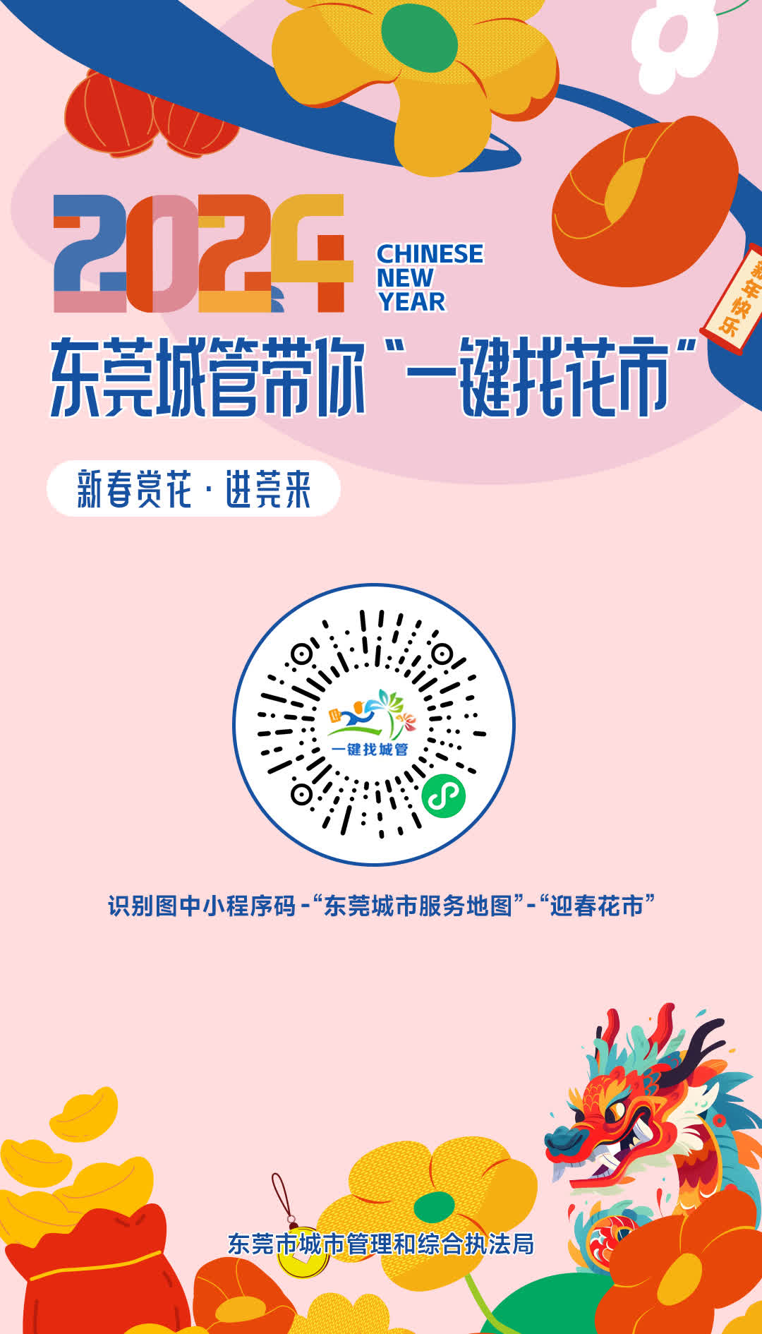 為了讓市民朋友獲得良好體驗,東莞城管部門依託智慧城管系統開發了「迎春花市地圖」,幫助市民一鍵導航到達全市各個迎春花市點。市民可在微信搜索「一鍵找城管」小程序,點擊主頁面「城市服務地圖」中的「迎春花市」,便可查找附近的花市位置並一鍵導航。同時,多個鎮街在花市設置服務點,多部門聯合值守,全力做好後勤保障工作,為市民群眾打造安全有序、歡樂和諧的迎春氛圍。快來東莞迎春花市逛逛,過一個花團錦簇的喜慶年吧!