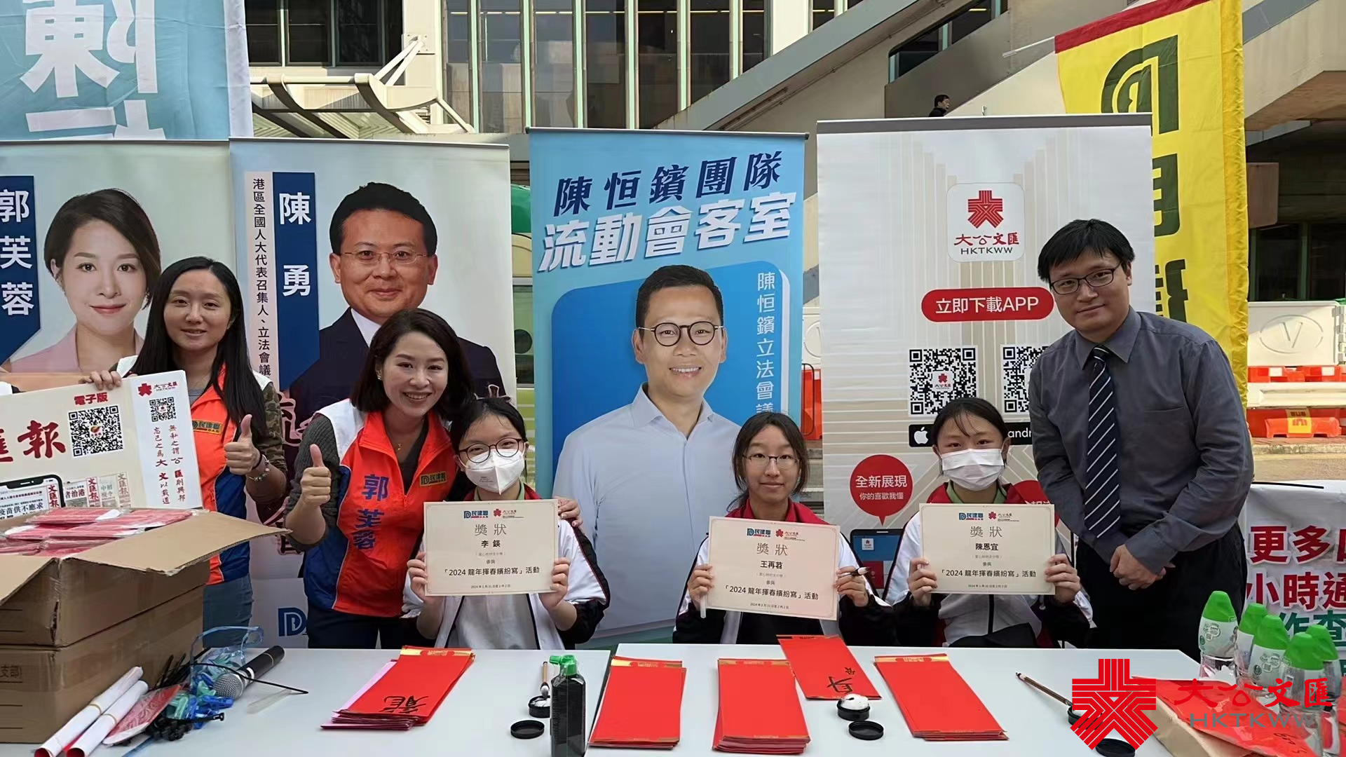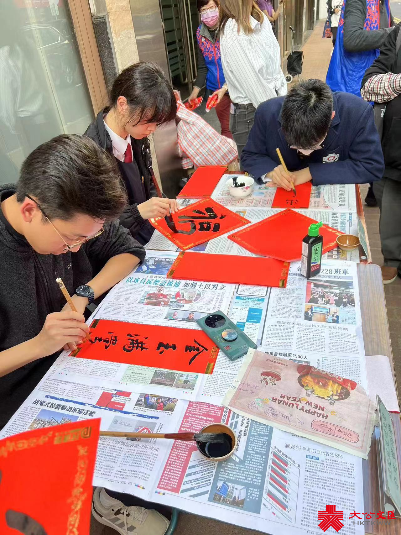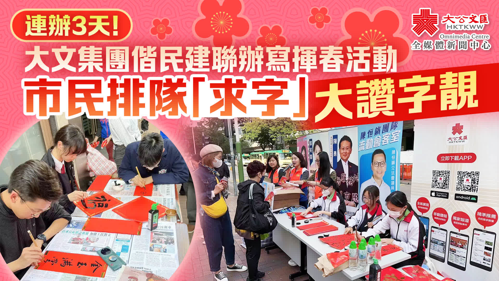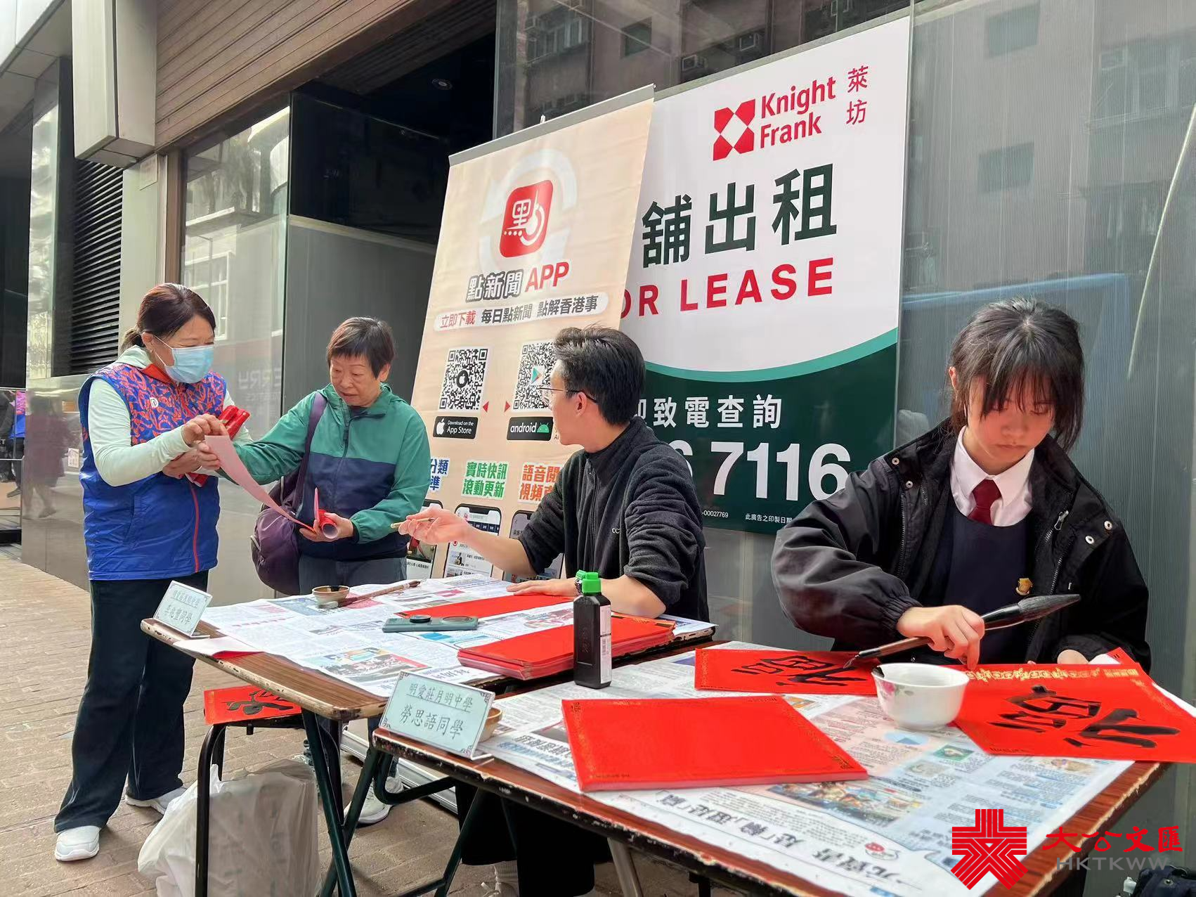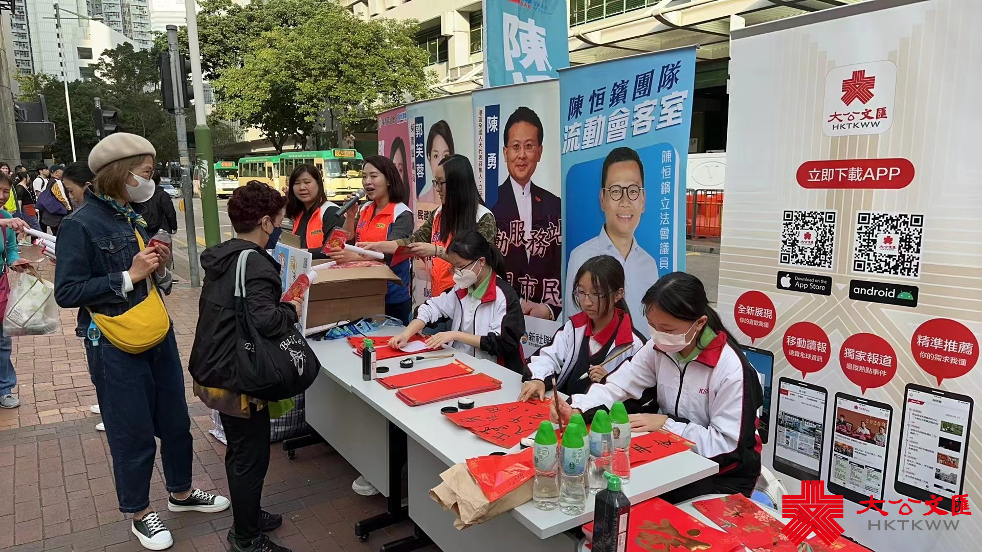 大公文匯全媒體報道,農曆新年將至,香港大公文匯傳媒集團與民建聯攜手合作,於油尖旺區、中西區和葵青區,繼續舉行「龍年揮春繽紛寫」活動,以增添節日氣氛。該活動邀請了「香港青少年書法大獎賽」中得獎學生現場為市民寫揮春。