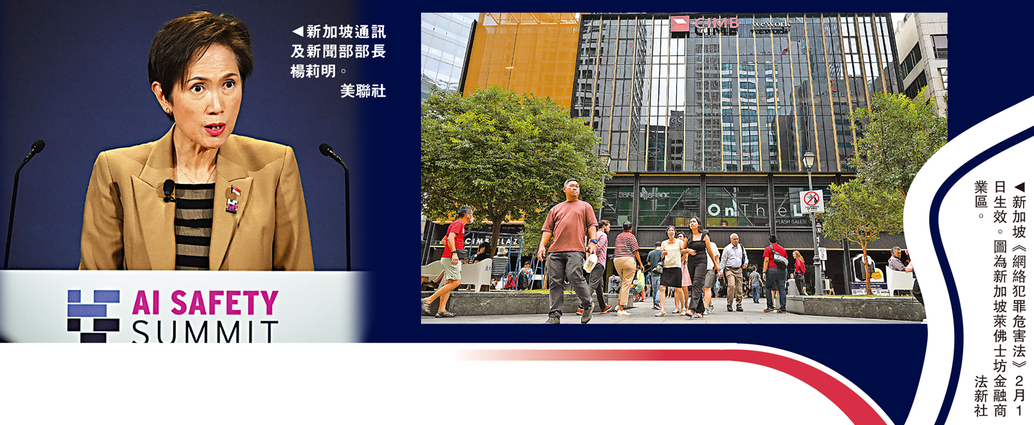 大公報綜合《聯合早報》、《海峽時報》報道:新加坡《網絡犯罪危害法》2月1日起正式生效。根據該法,新加坡當局有權按照個別案件情況,發出5種指令,包括停止通訊、內容屏蔽、用戶限制、網域屏蔽及刪除手機應用,不遵從指令者可能被起訴。當局表示,該法將幫助政府更有效打擊網絡犯罪活動,主要針對危害國家安全、煽動暴力、破壞民族和諧,以及詐騙等行為。