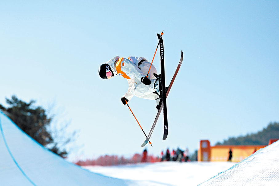 「武術裏面也有翻跟頭,而且武術也是打分項目,所以我覺得和自由式滑雪還是蠻像的,觀賞性也都很強。」當記者問,自由式滑雪中的一些動作是不是像武俠小說中的「輕功」時,這位小將回應說:「是的,那種騰空和旋轉,確實很像。」