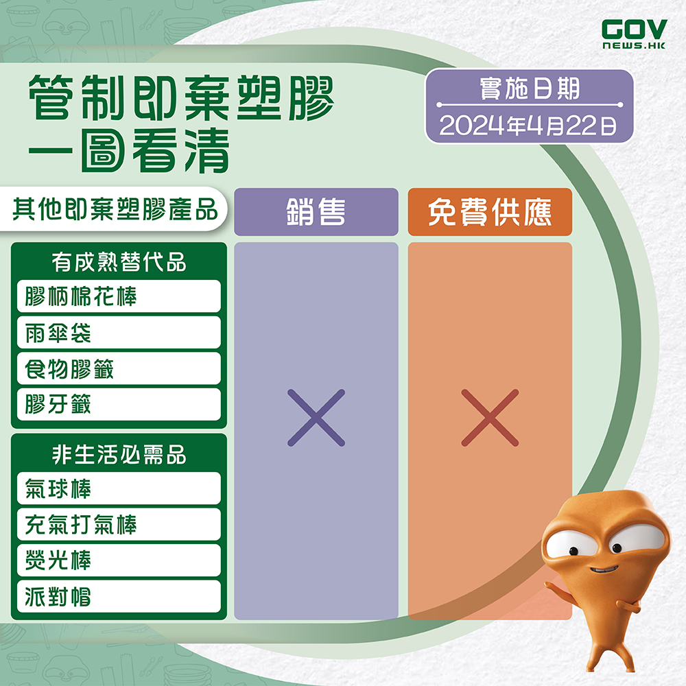 大公文匯全媒體報道,本港將在4月22日起管制即棄塑膠產品,包括禁止食肆提供或銷售9類即棄塑膠餐具,禁售及免費供應日用品如棉花棒、雨傘袋、膠牙籤等。哪些即棄塑膠產品可以使用和購買?哪些產品則不再免費提供?政府又會以什麼準則制訂需要受管制的塑膠產品呢?受管制即棄塑膠產品都有哪些?即睇以下幾張圖片,助你更清楚了解!