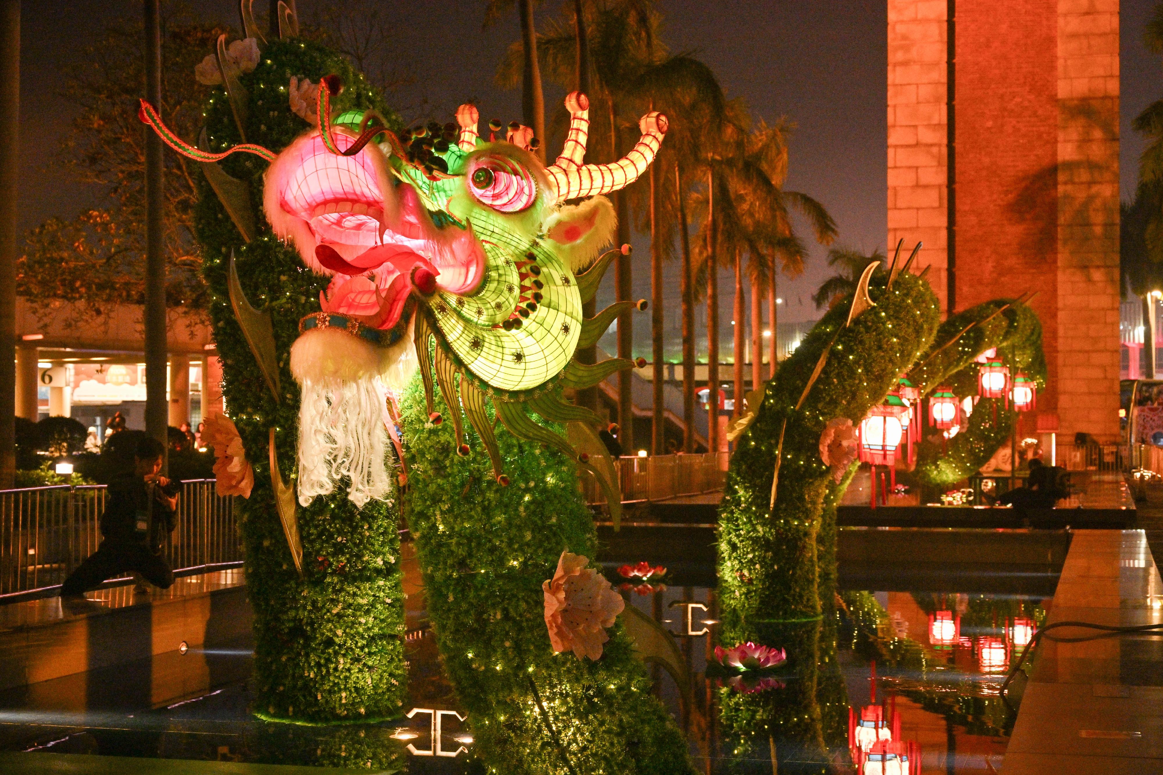 為了迎接新春,非物質文化遺產辦事處與本地紮作師傅陳耀華合作,製作以代表春天生機的青龍為主要設計元素的精美花燈,青龍在宮燈和綻放的年花之間穿梭起舞,呈現生氣盎然、花攢錦簇之景象,寄寓香港在龍年繼續欣欣向榮。而舞龍和紮作技藝均為本地的非物質文化遺產項目,市民可透過欣賞師傅精湛的紮作技藝,感受非遺項目的活力。