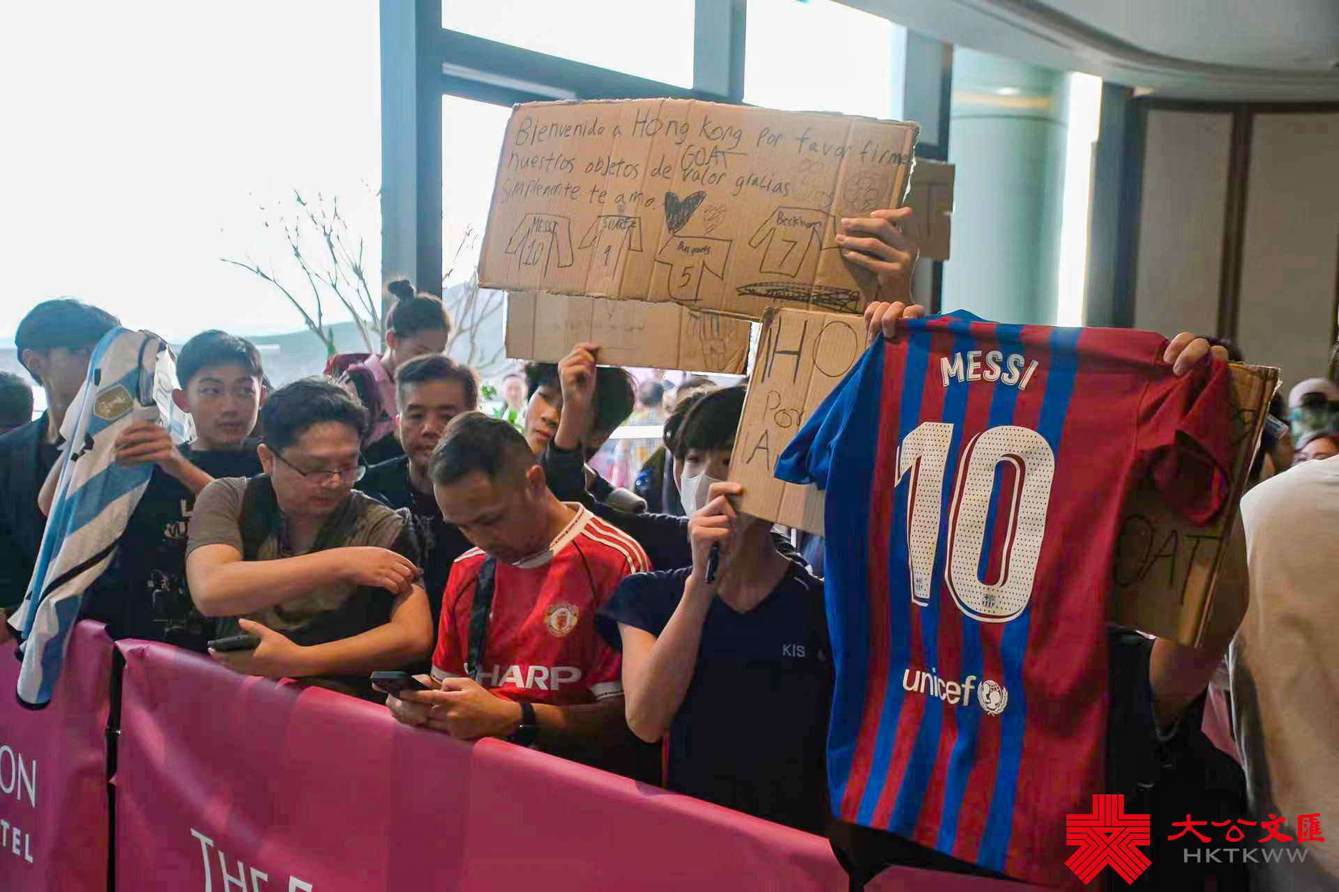 大公文匯全媒體報道,「球王」駕到,全港美斯熱!阿根廷球王美斯(Messi)今日(2日)隨國際邁阿密抵港,出戰周日(4日)在香港大球場與港隊的友誼賽。在歡迎儀式後,美斯乘搭旅遊巴到黃竹坑富麗敦海洋公園酒店,並於晚上6時30分出席在酒店舉行的賽前記者會。大公文匯全媒體記者在酒店見到,有大批球迷在現場等候,期望搶先見到美斯。