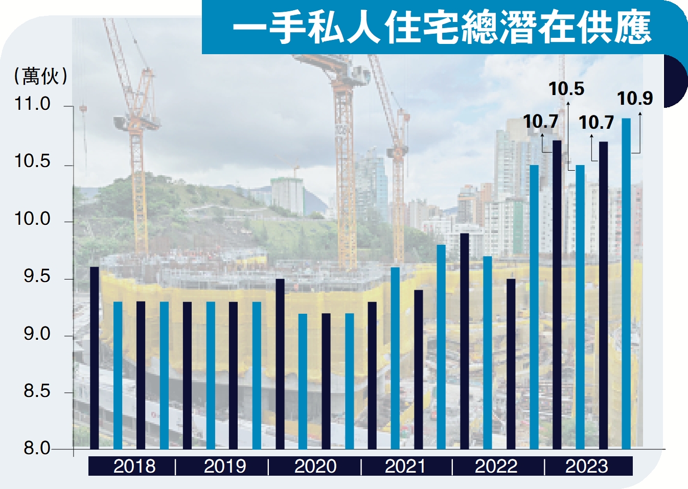 房屋局發言人表示,該10.9萬個單位中,約有9.3萬個是實用面積少於753方呎的中小型單位,佔整體約85%,按季減約1個百分點。不過,局方預計未來數月將有8幅住宅用地轉為熟地,可提供約4900個單位。而隨着特區政府持續有序地增加房屋土地供應,相信未來3至4年的私人住宅總供應量將維持在較高水平。
