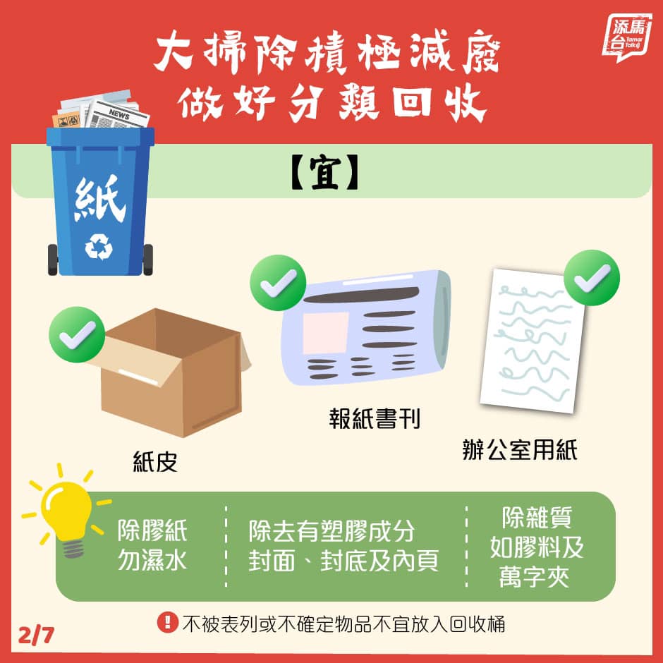 大公文匯全媒體報道,農曆新年快到,很多市民都在努力送舊迎新,清理家中雜物。面對一大堆「斷捨離」物品,只要適當做好分類回收,就能減少廢物,為保護環境出一分力。