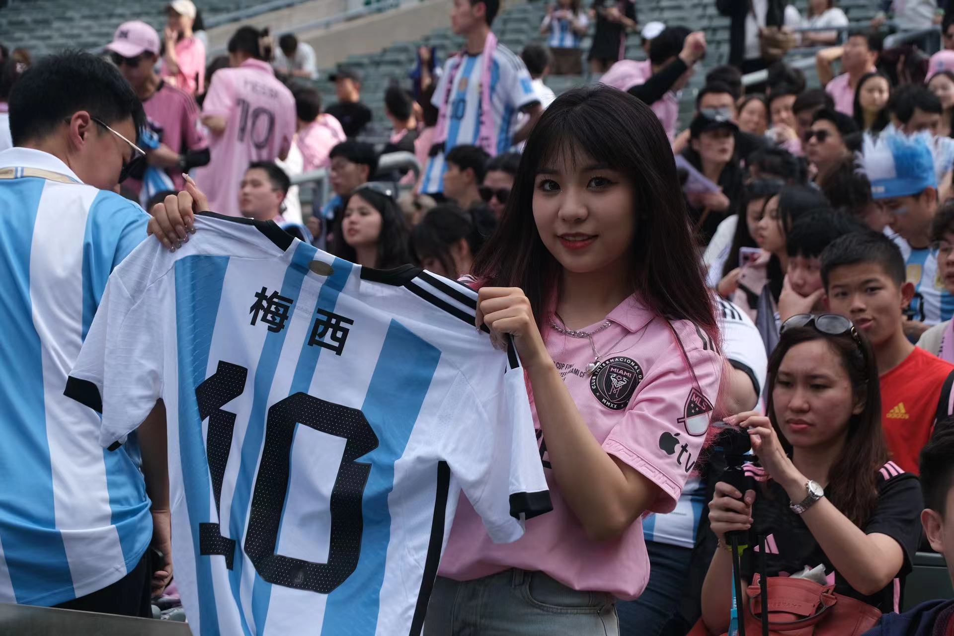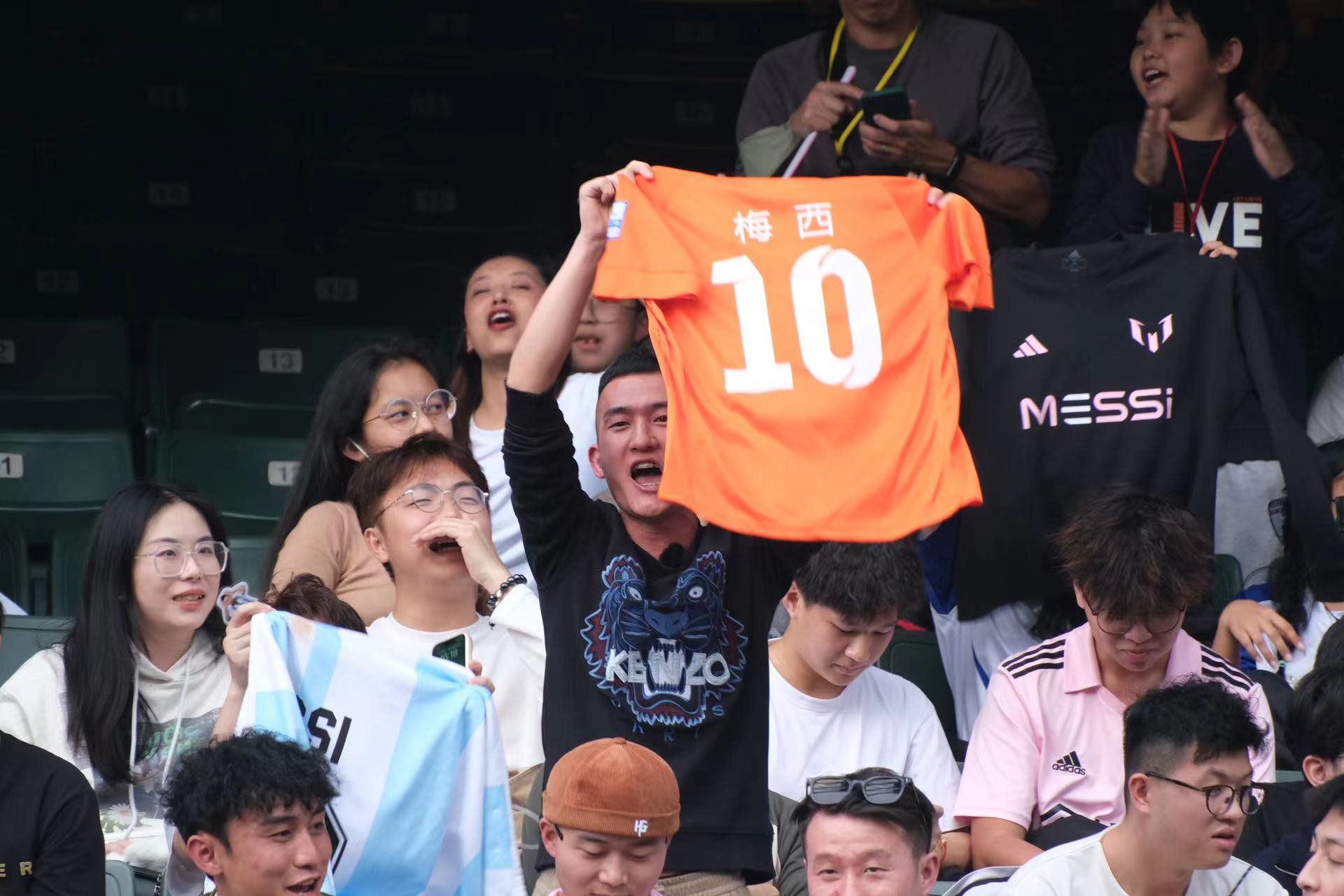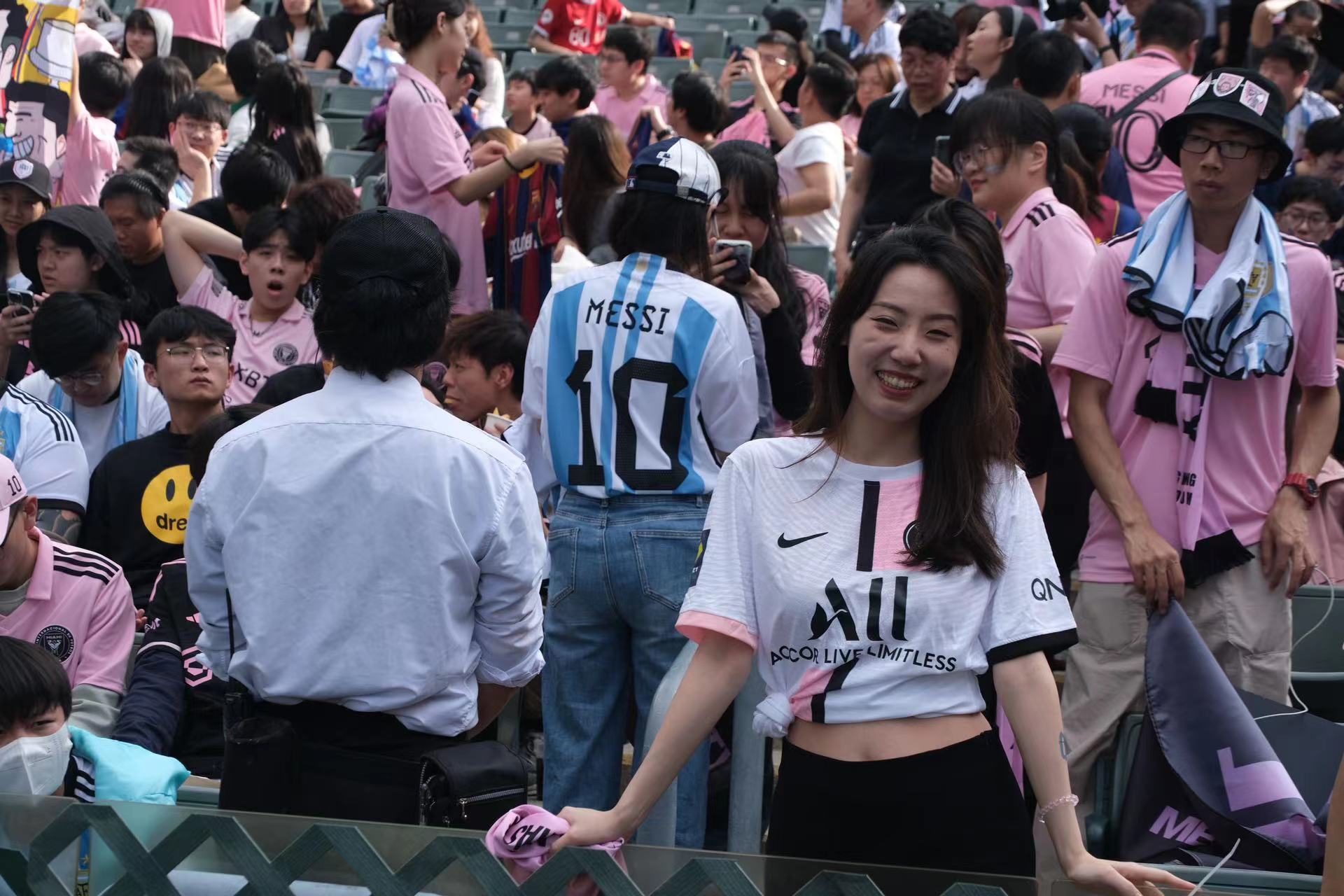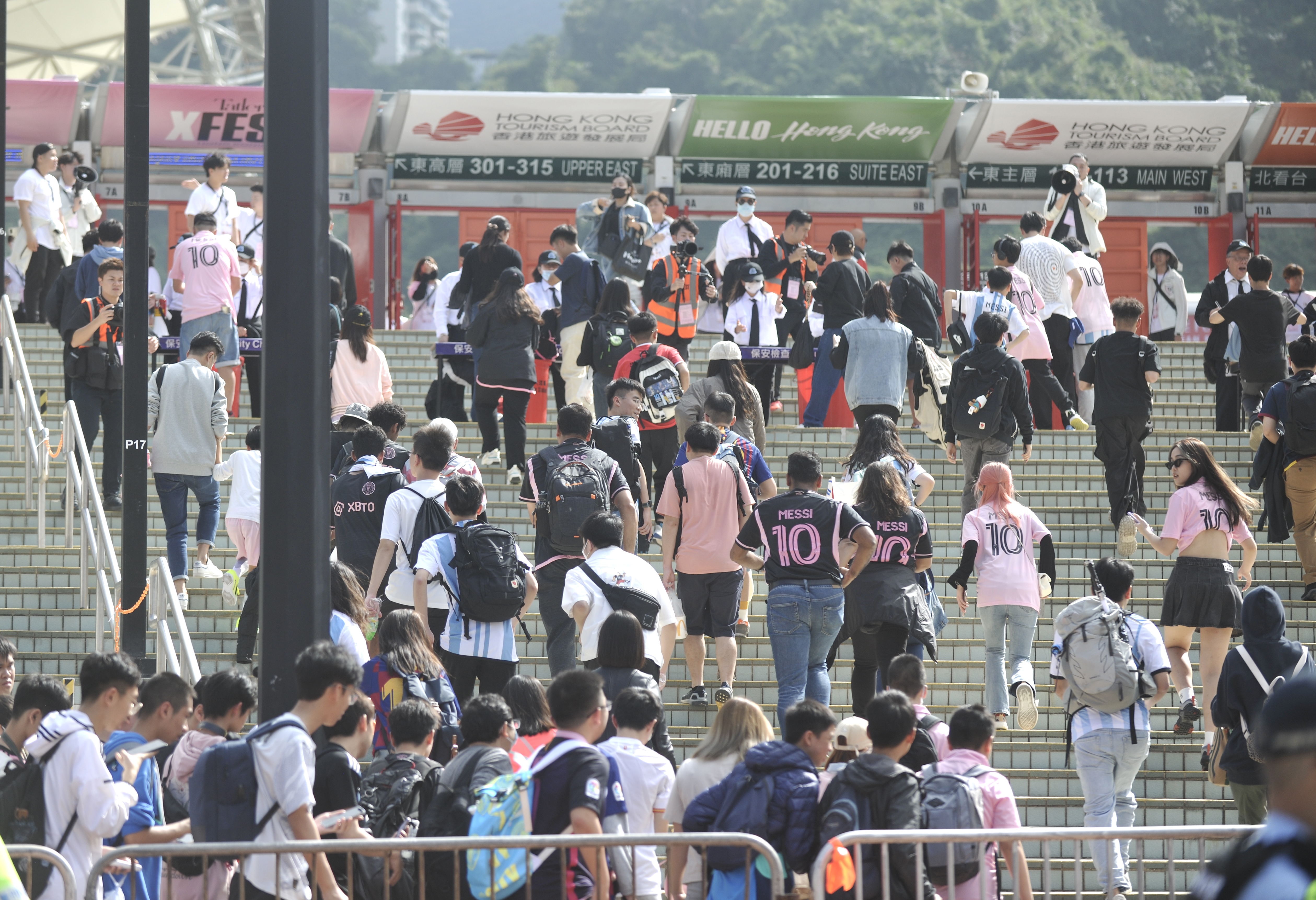 持票人士今日下午2時半起陸續入場,無數球迷身穿或展示美斯不同時期的球衣,包括阿根廷國家隊、西甲巴塞羅那、法甲巴黎聖日門和國際邁阿密,一時間美斯戰袍「10號球衣」幾乎成了球迷們的隊服,撐起球場「半邊天」。