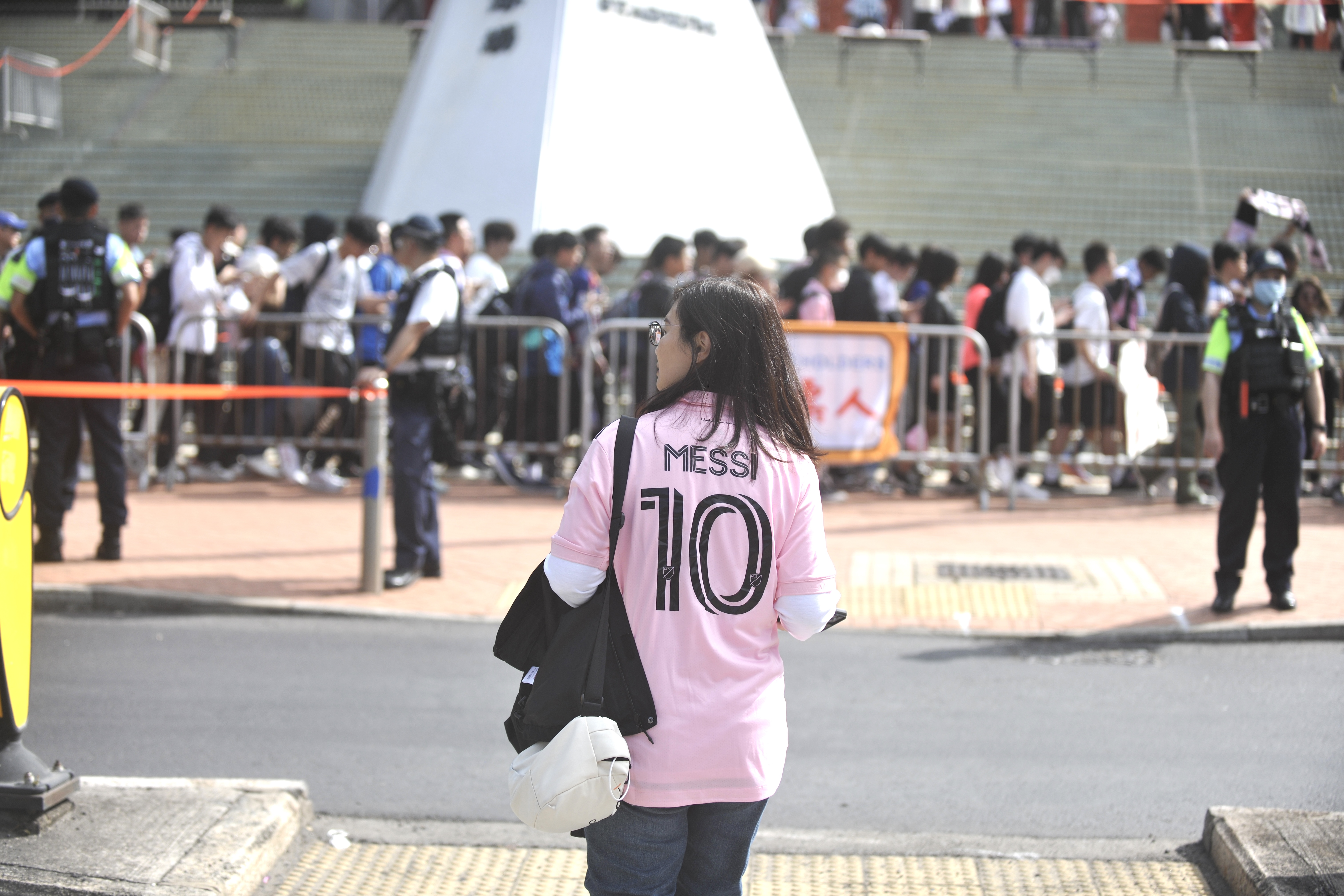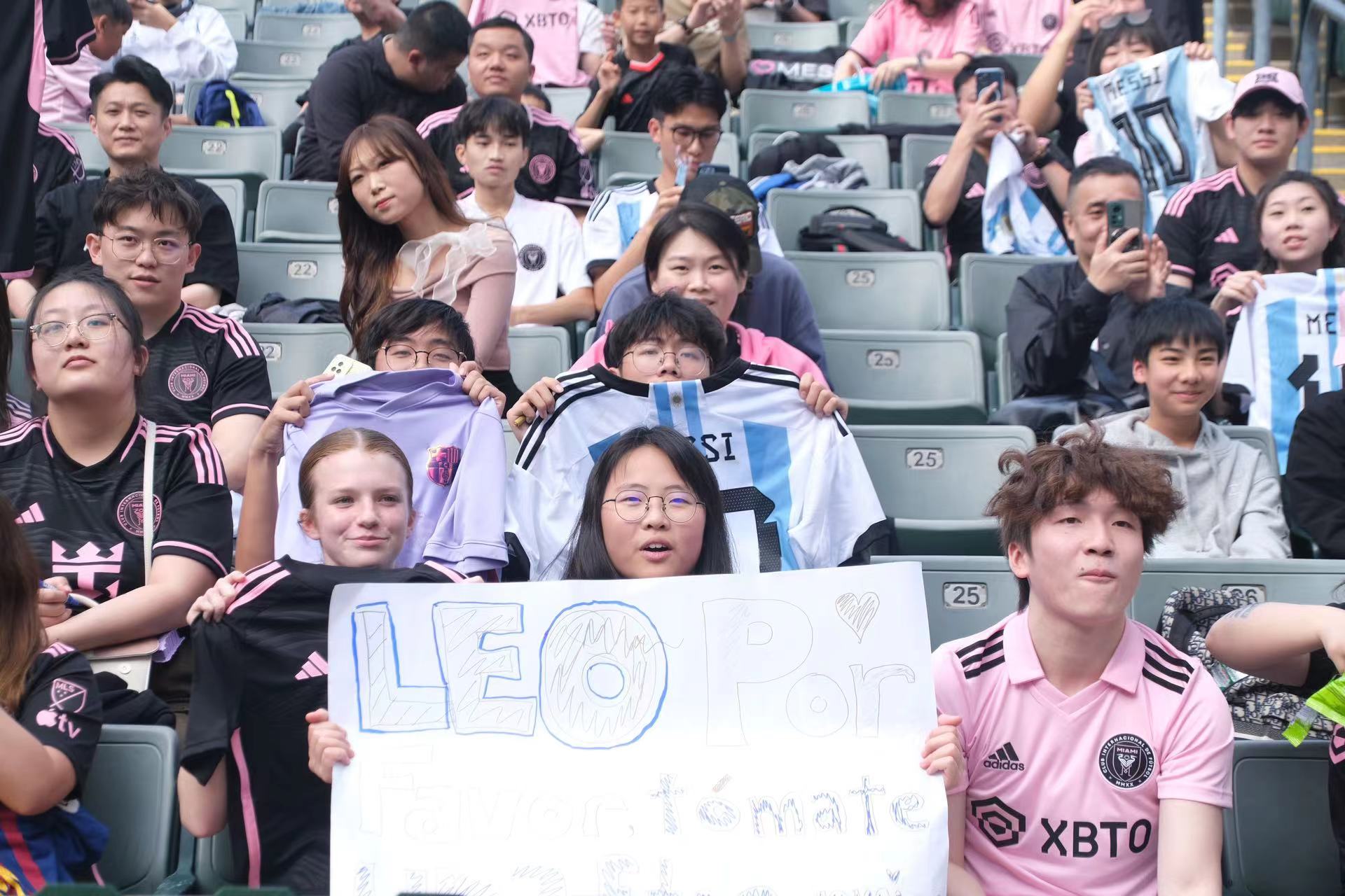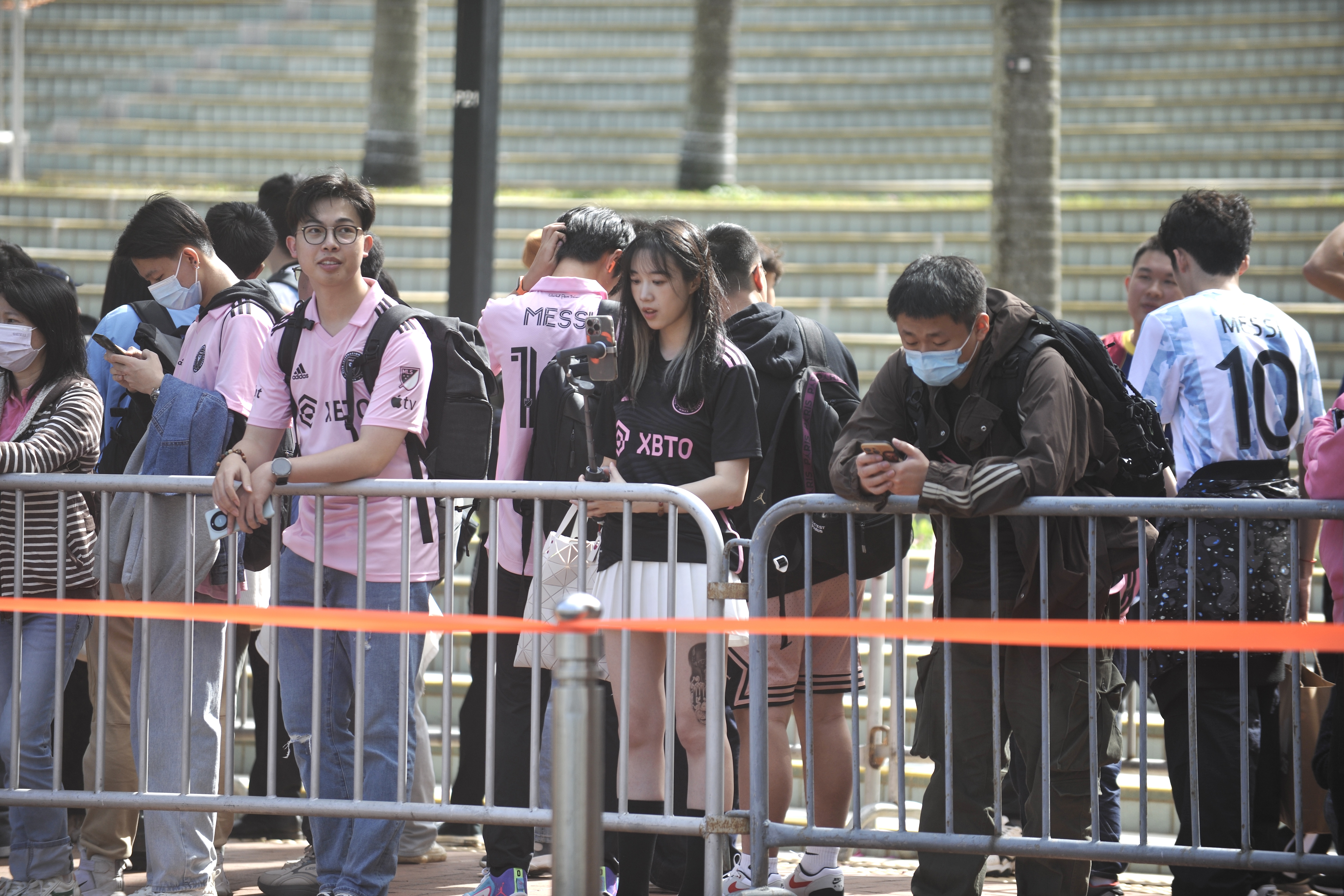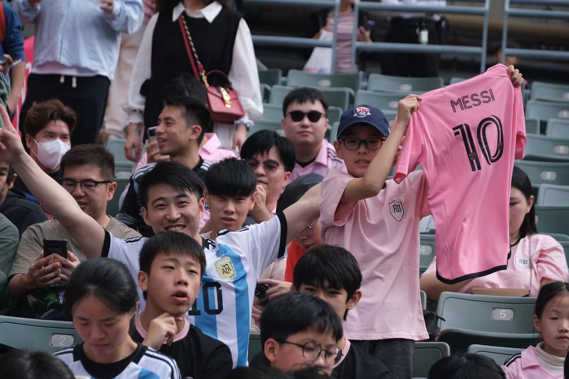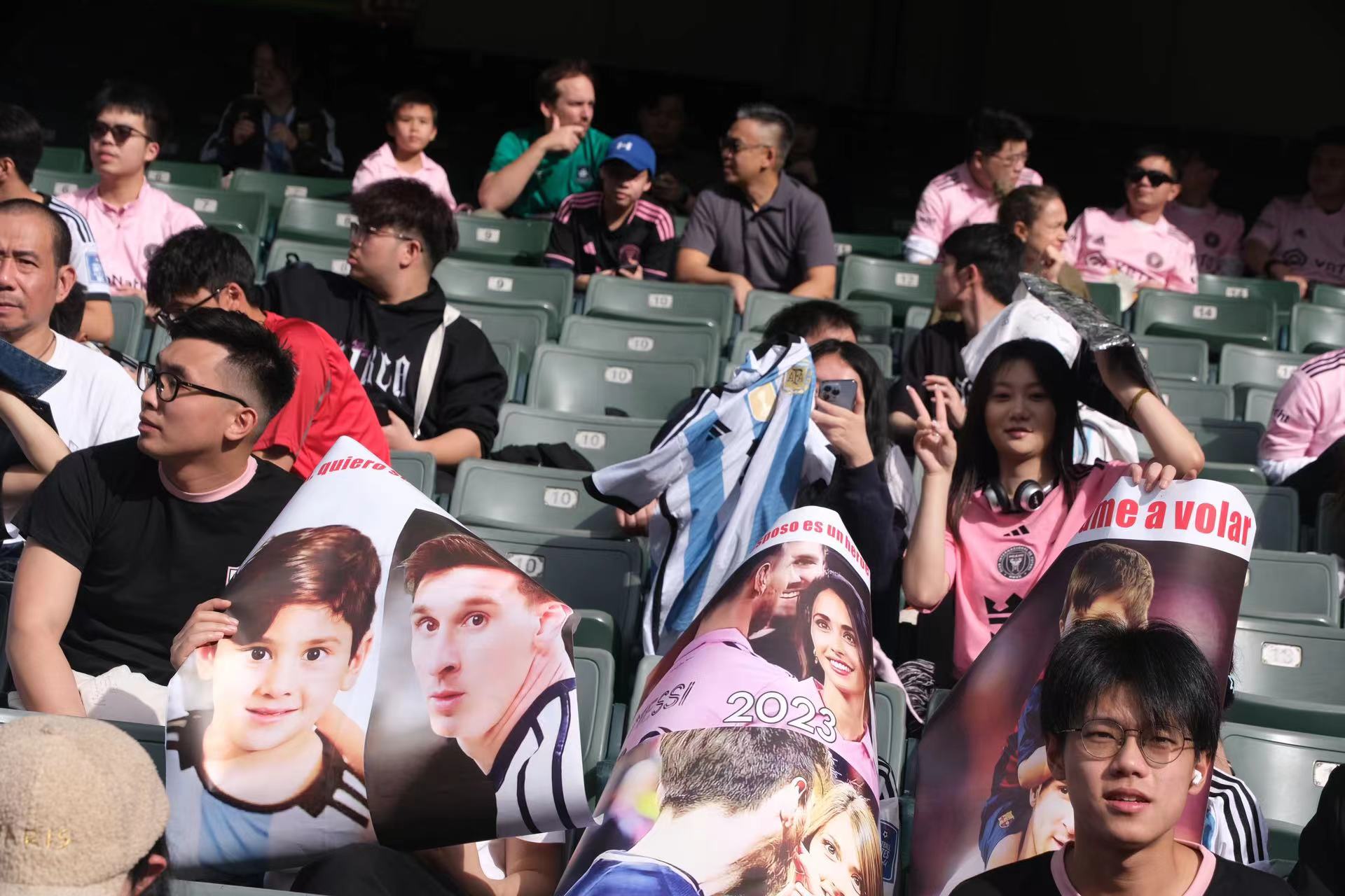 持票人士今日下午2時半起陸續入場,無數球迷身穿或展示美斯不同時期的球衣,包括阿根廷國家隊、西甲巴塞羅那、法甲巴黎聖日門和國際邁阿密,一時間美斯戰袍「10號球衣」幾乎成了球迷們的隊服,撐起球場「半邊天」。