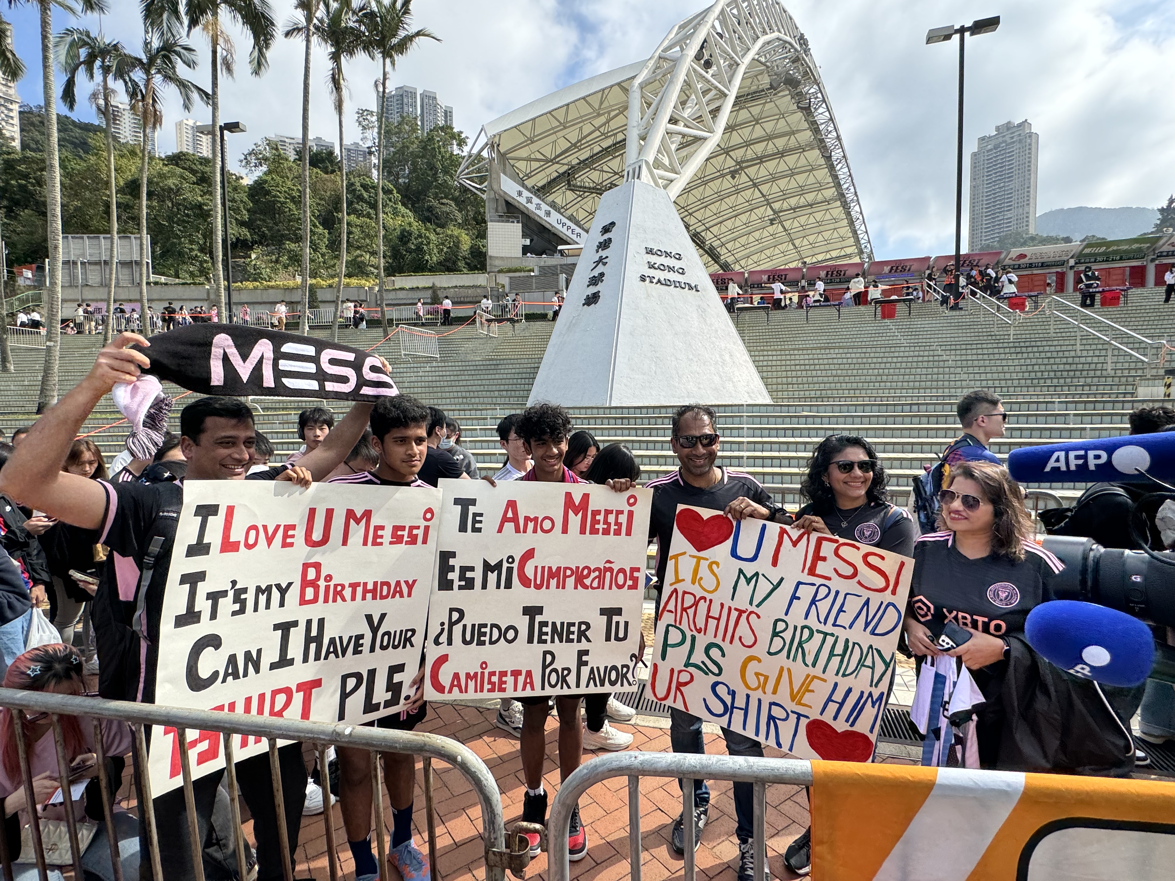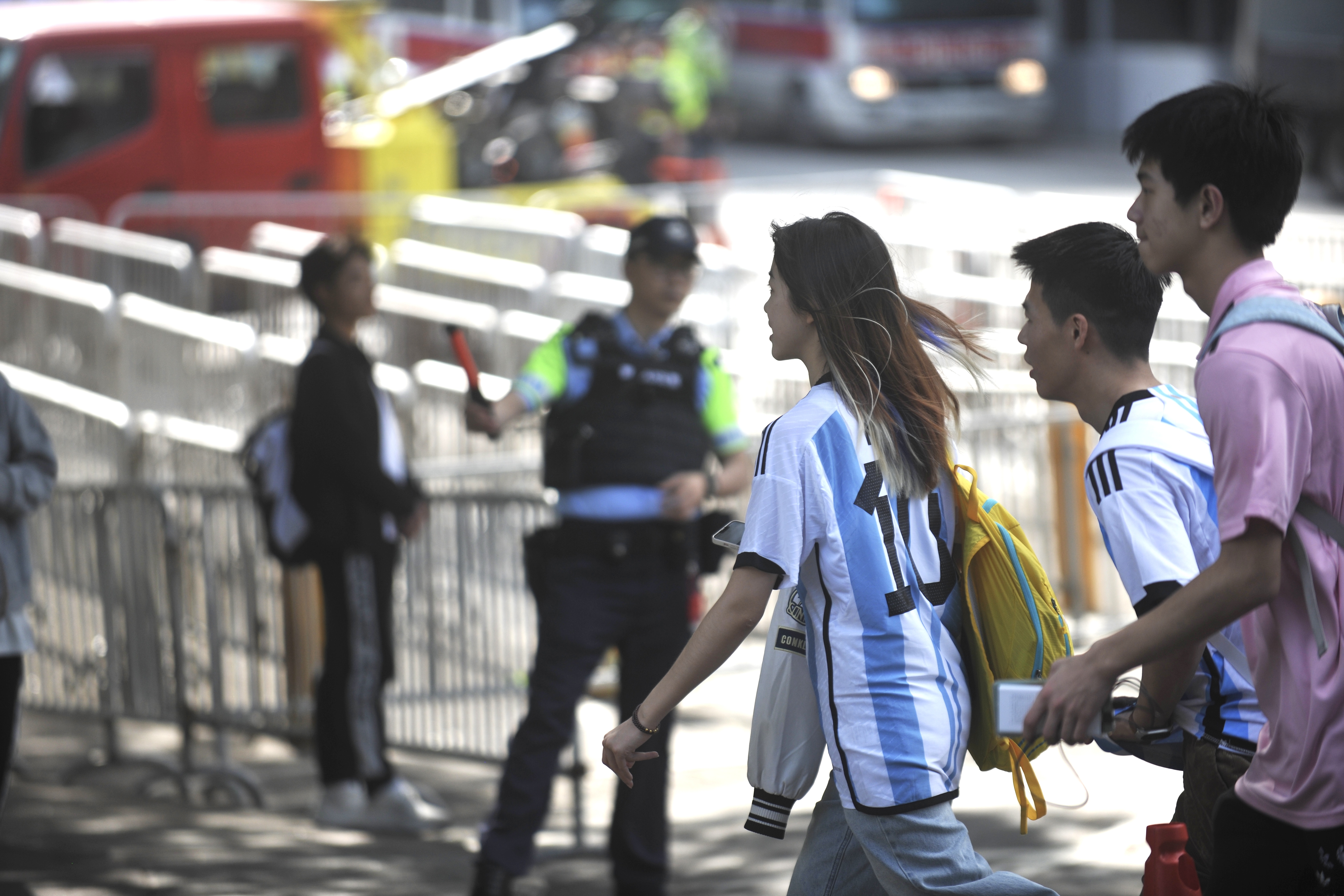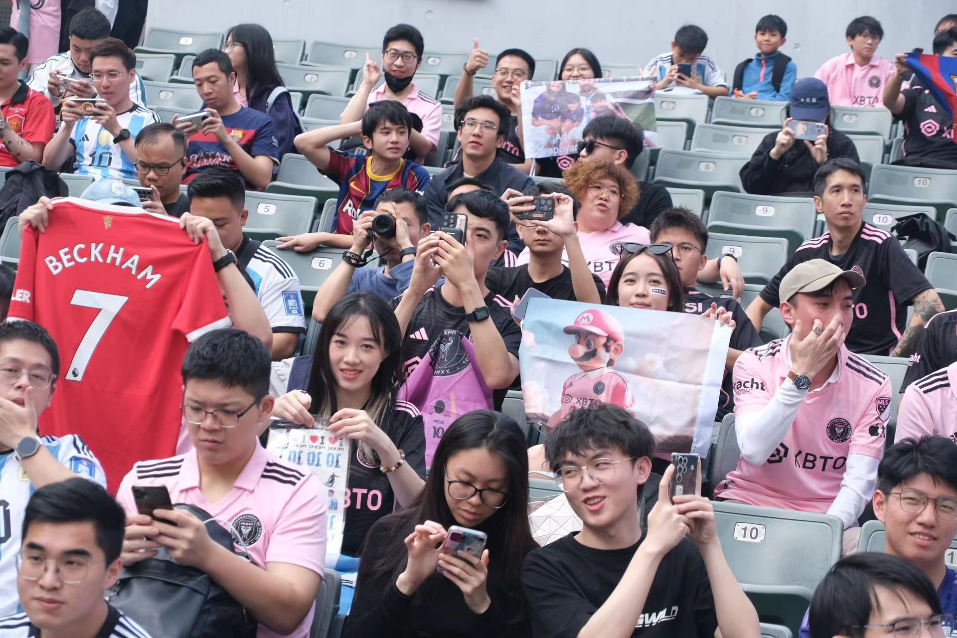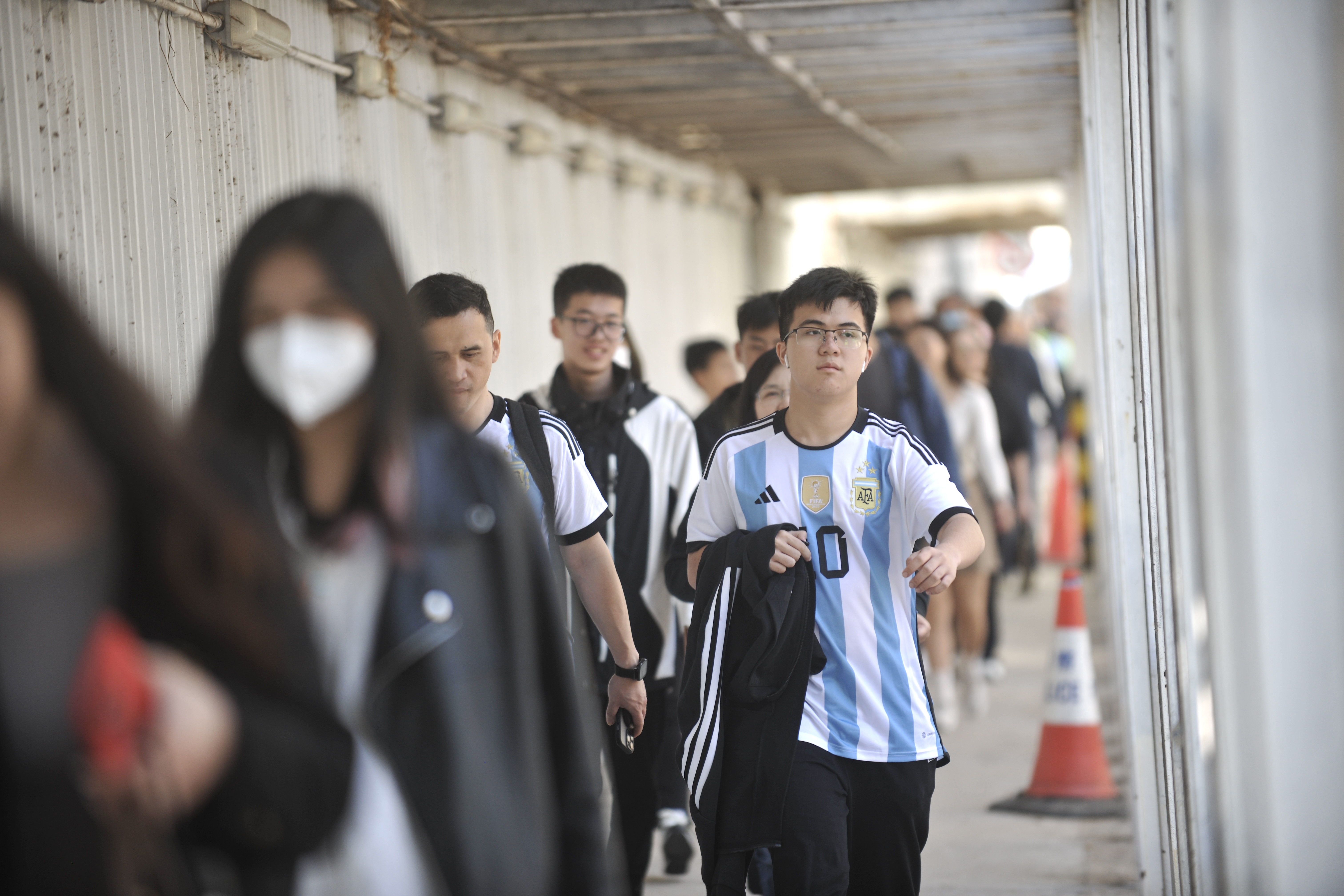持票人士今日下午2時半起陸續入場,無數球迷身穿或展示美斯不同時期的球衣,包括阿根廷國家隊、西甲巴塞羅那、法甲巴黎聖日門和國際邁阿密,一時間美斯戰袍「10號球衣」幾乎成了球迷們的隊服,撐起球場「半邊天」。