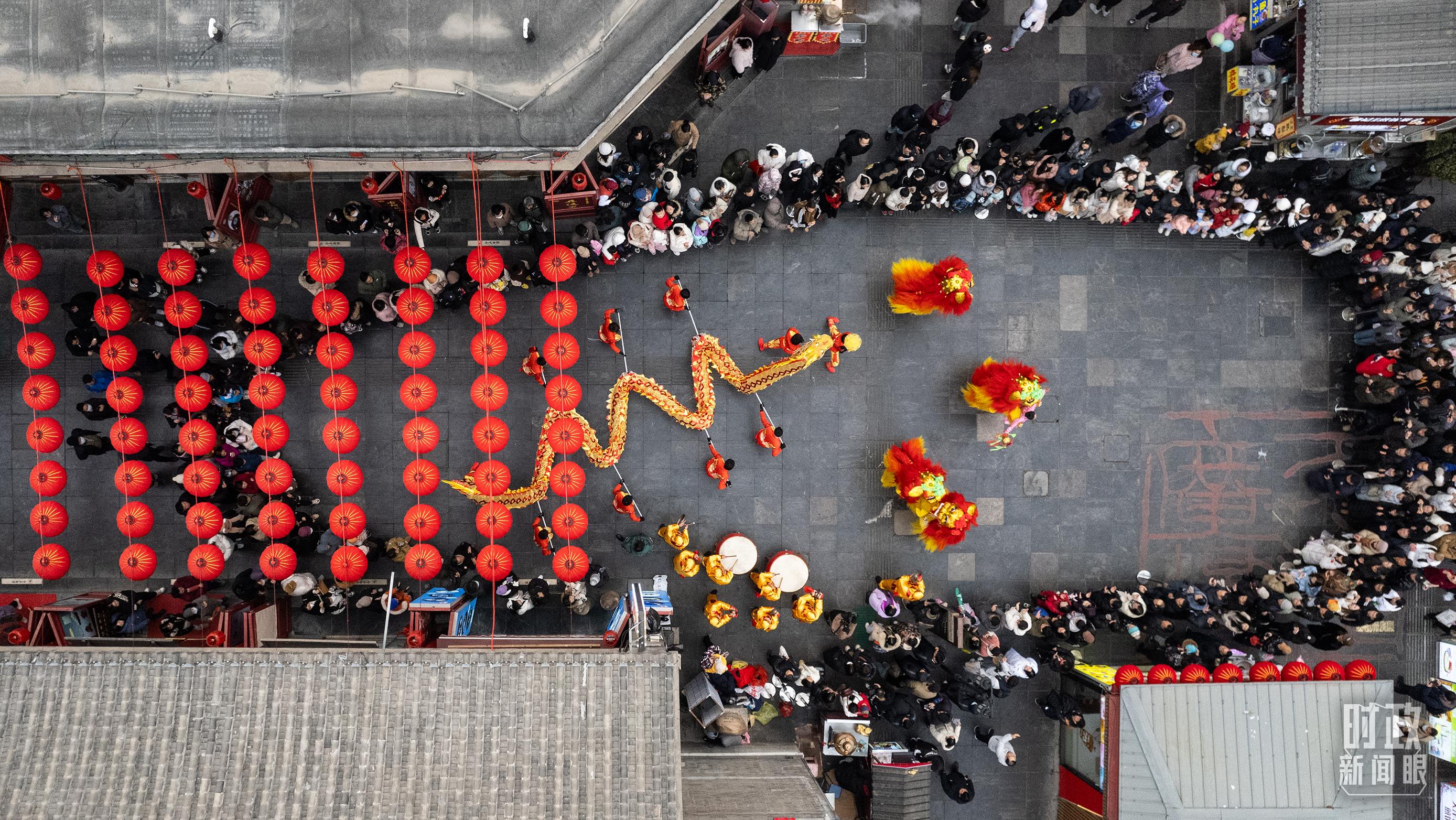 △春節將至,天津古文化街張燈結綵。(總台央視記者李煒拍攝)