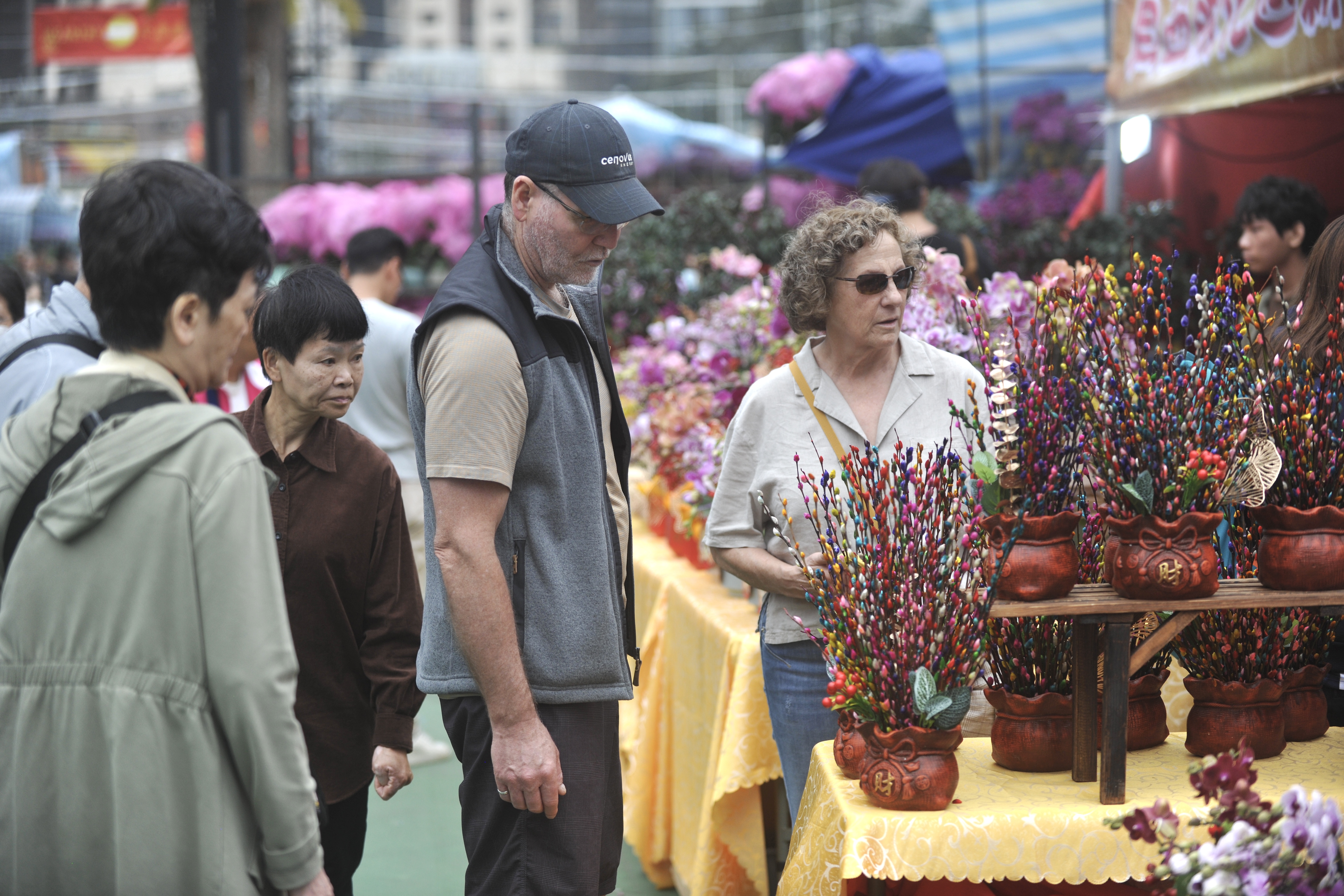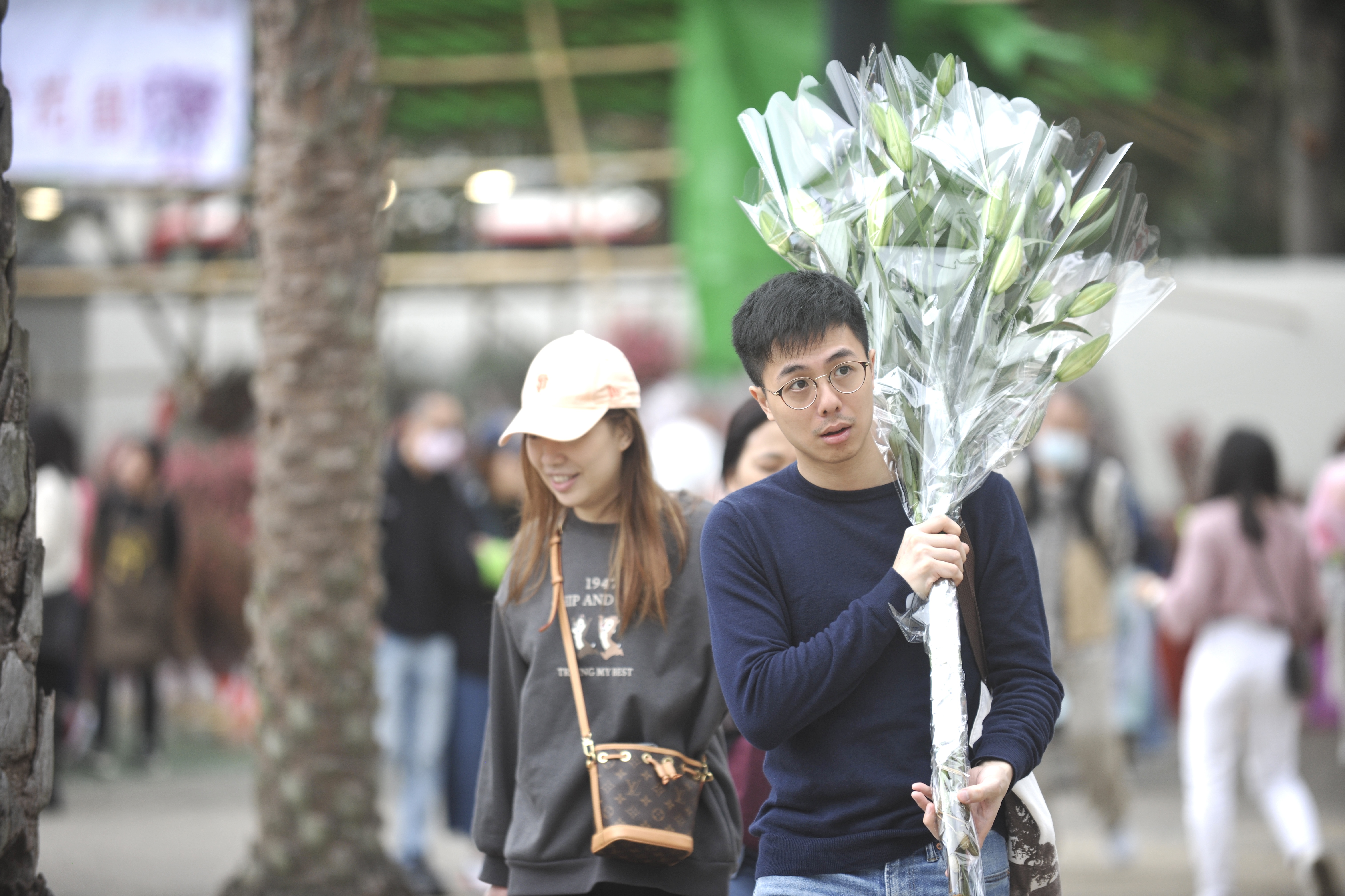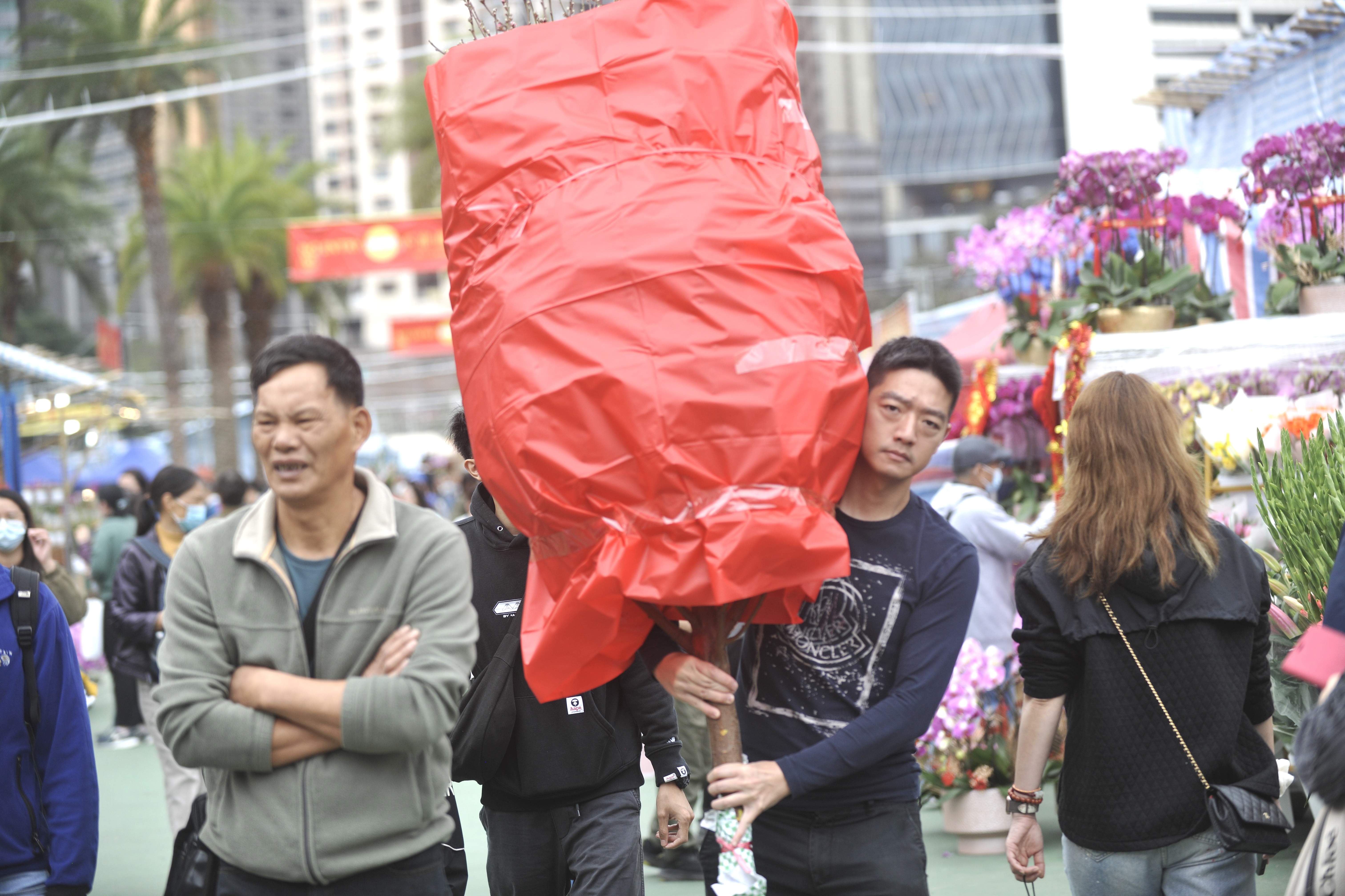 大公文匯全媒體記者所見,維園年宵市場人流如鯽,生意興旺,蘭花、銀柳、百合花、桃花等都是市民們的優選。市民趁立春好時節挑選心儀的新春花卉,面帶笑容,滿載而歸。