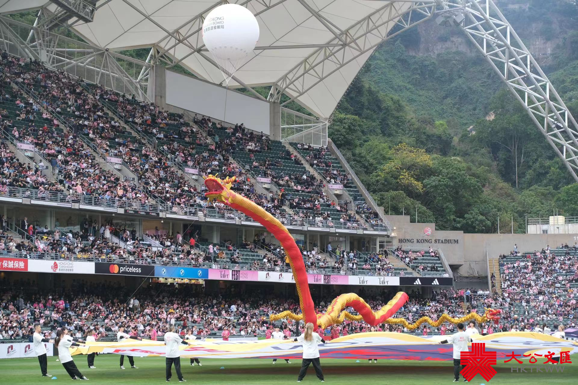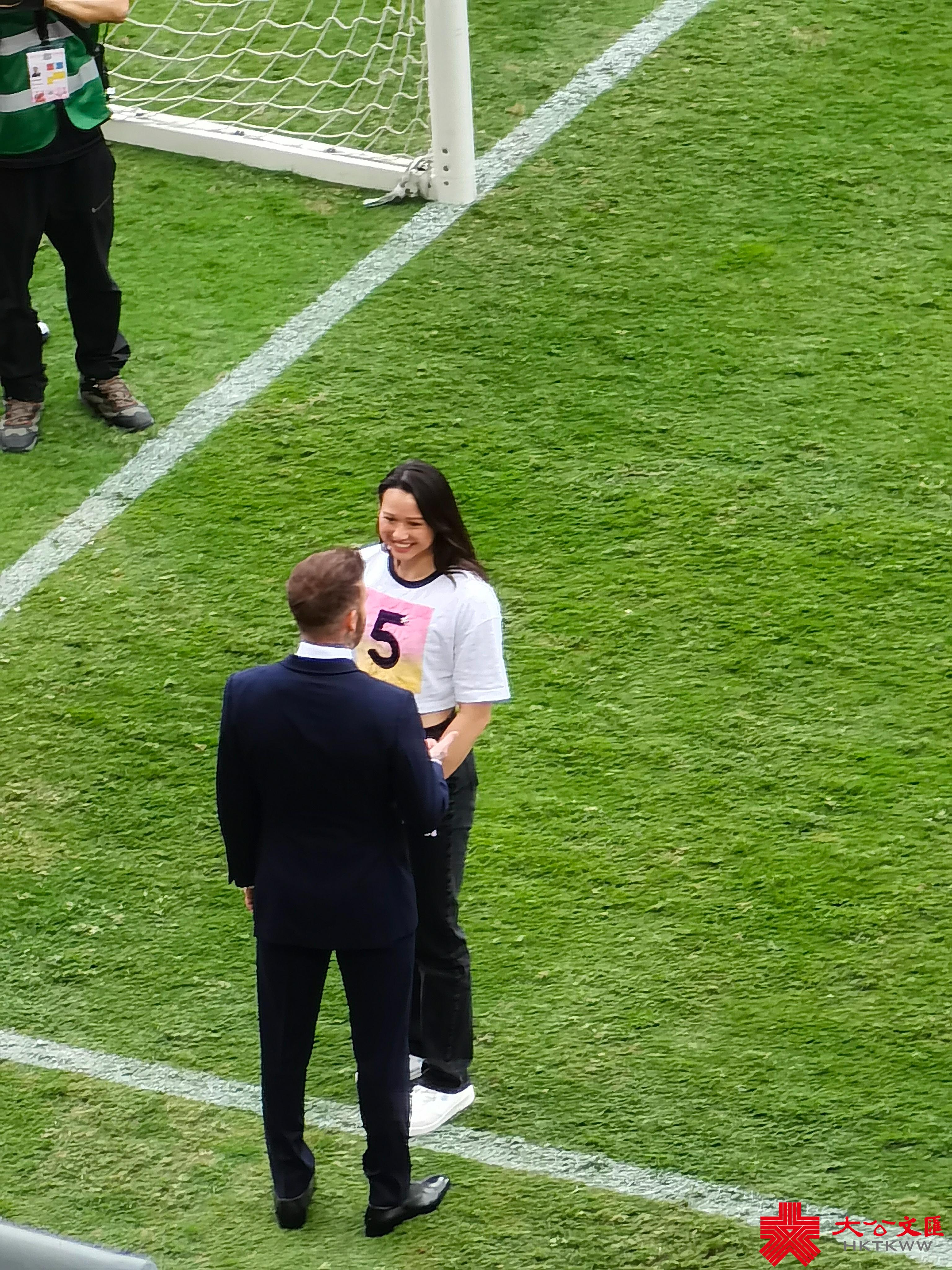 大公文匯全媒體報道,「球王」美斯(又譯梅西)領軍的美職球隊國際邁阿密CF,今日(4日)在香港大球場與港隊踢表演賽。表演賽下午4時開波,不過下午2時許大球場就有精彩表演,男子組合MIRROR成員姜濤和盧瀚霆(Anson Lo),歌手鄧紫棋(G.E.M.)及Gareth T湯令山等。球隊班主及「萬人迷」碧咸(又譯貝克漢姆)亦現身球場。