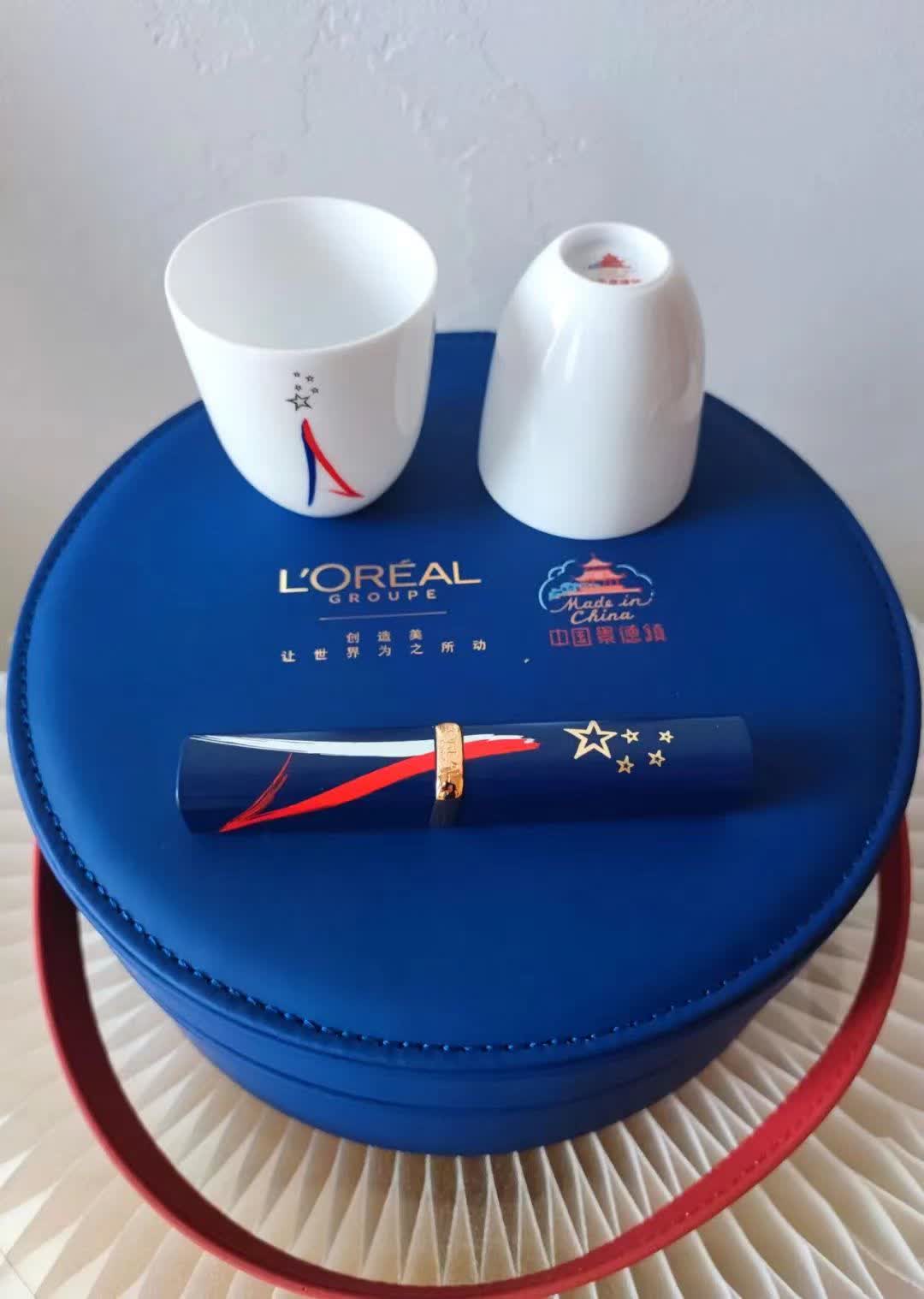 禮盒由巴黎歐萊雅「666 法式正紅」口紅和龍珠閣名瓷對杯組成,旨在通過中國傳統藝術與法式時尚色彩的碰撞,向大眾展示中法文化多元交融之美。