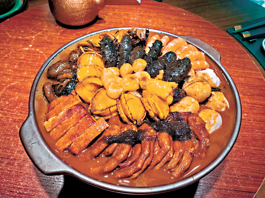 粵港澳飲食習俗中,過年一定少不了盆菜。盆菜代表盆滿缽滿、團團圓圓的美好之意,飽含對幸福生活的嚮往。港人王先生和太太是木棉餐廳的回頭客,到深圳逛街時經常都會到餐廳吃上一餐,「深圳新式餐飲很多,不過我們夫婦還是最愛粵菜,吃得最習慣。」因家有老人,不方便外出,王先生就打算預約一份「新春山海至味」盆菜,提前打包帶回家,全家人一起在沸騰的湯汁中翻找美味,其樂融融。「盆菜的分量足,價格也實惠,打包都很抵。食嘢要講好意頭,一盆攬盡新年好意頭!」王先生笑道。