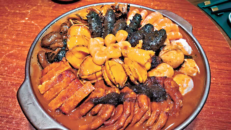 緊鄰地鐵會展中心站的半島豪苑酒家,平時就有很多香港客人到店,廣州半島投資集團深圳區域總經理江文棚介紹,餐廳早上的茶市港客佔比四五成。春節期間,為食客奉上金玉滿堂、金玉聚寶等多款盆菜禮盒,將鮑魚、遼參、魚翅、金蠔、花膠等十餘款山海珍饈共冶一爐,湯汁濃郁,回味綿延。而盆菜、臘味都是港客年夜飯的心頭好,多款「新年發財大盆菜」已被香港客人預定打包至家中享用。