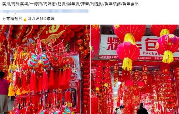新年將至,已有不少港人前來深圳筍崗批發城添購年節裝飾。有港人分享,早上過關來筍崗附近飲茶,再去買春聯、燈籠,利是封,公仔等。