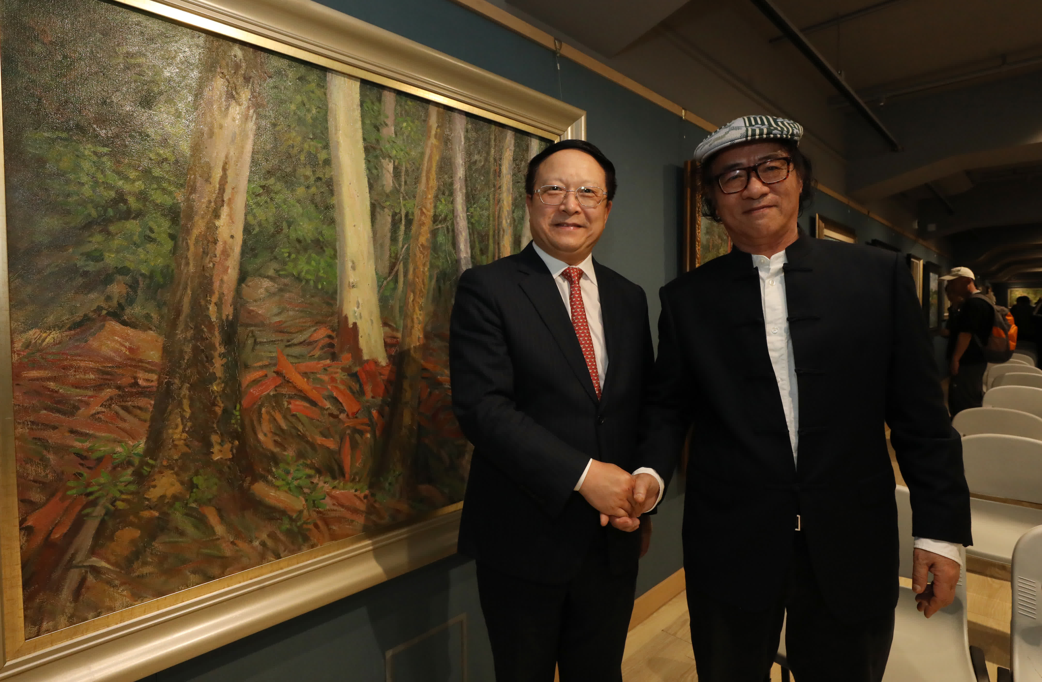 展覽開幕儀式上,金耀基教授在致辭中稱:「這一次是香港油畫屆的一個里程碑,今天一來到就如同進入森林,一個有人文的森林。在我的眼中林鳴崗是一個很純粹的藝術家,他在法國的國立高等學院畢業的,基本功非常扎實,嚴格來講他是一個學院派的畫家。」他又表示,中國本來是沒有油畫的,但是這一批藝術家把油畫帶進來,又再拿了出去。今天我們不要害怕西化,要把它變成一個中國文化的一部分。從前的我們是唯我獨尊的,但這一百年的變化很大,變得擁抱多元。