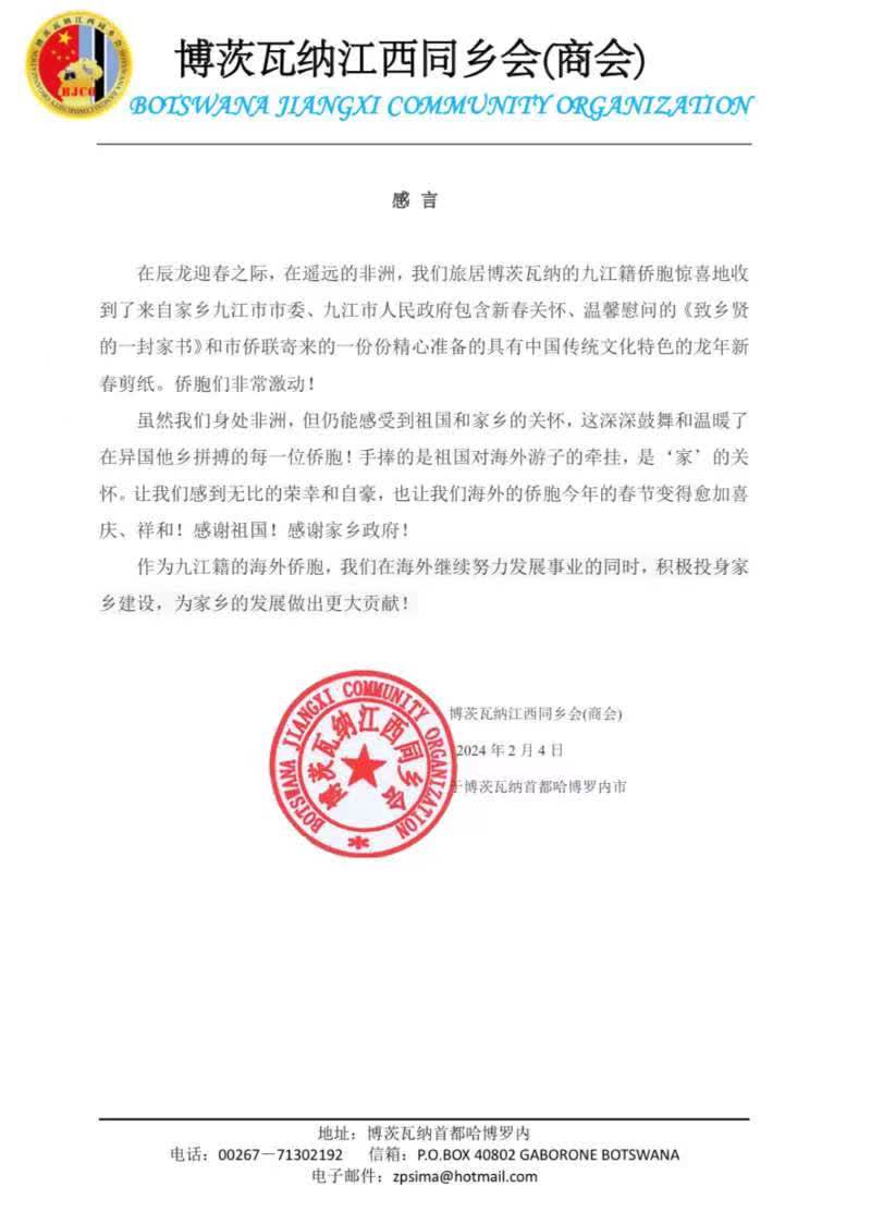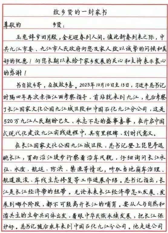 時間割不斷親情,空間阻不絕鄉誼。近日,中共九江市委、九江市人民政府發出《致鄉賢的一封家書》,在海外僑胞中引起熱烈反響。收到來自家鄉的關心後,海外僑胞用不同形式表達感謝,並為家鄉同胞送上新春祝福。