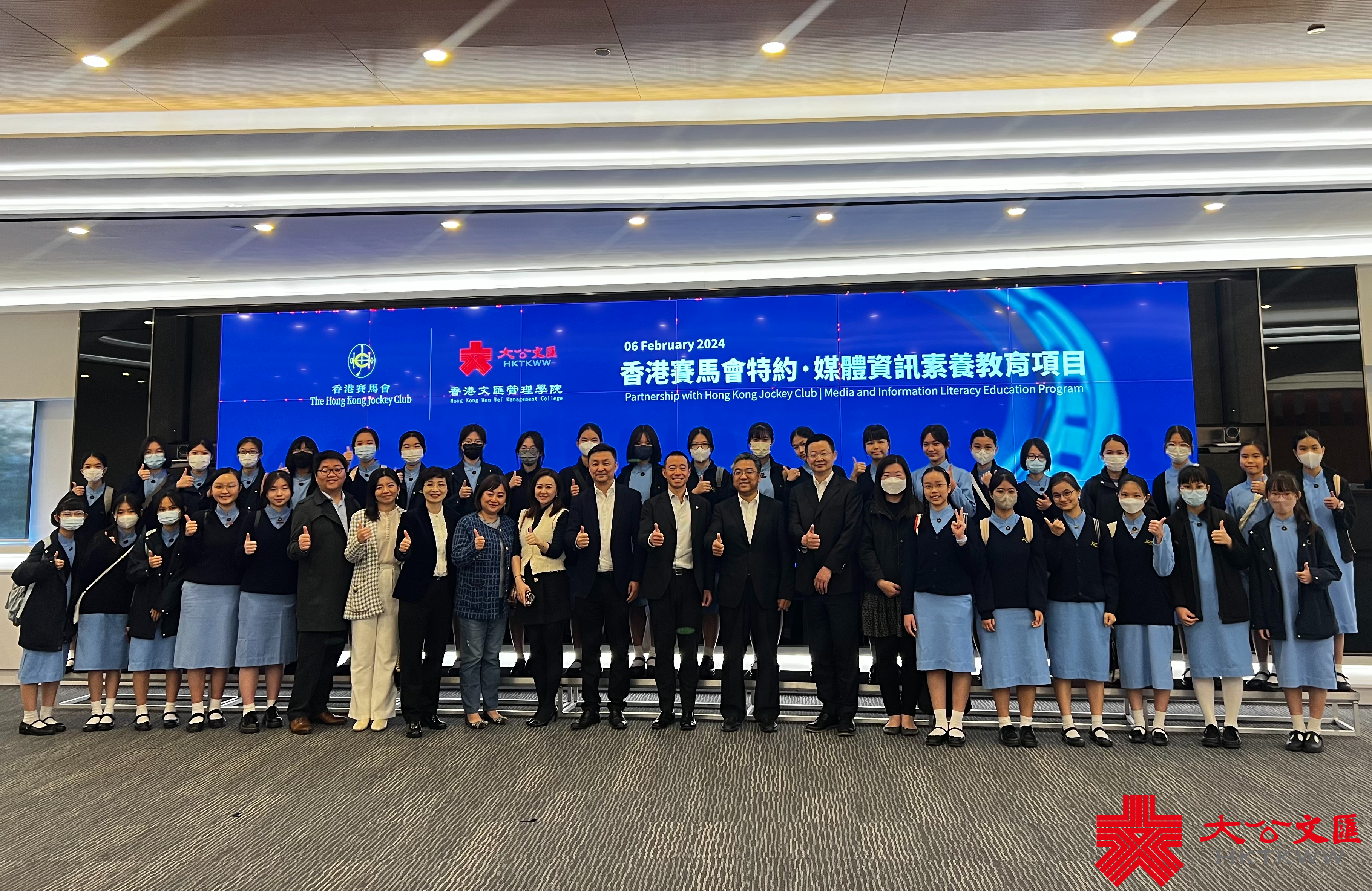 大公文匯全媒體報道,香港文匯管理學院展開「香港賽馬會特約·媒體資訊素養教育」項目,計劃為全港多家中小學開展10場大文集團參訪活動和10場到校專題講座活動。今日集團參訪活動接待來自九龍真光中學的近40位師生,開啟了媒體夢想的旅程。