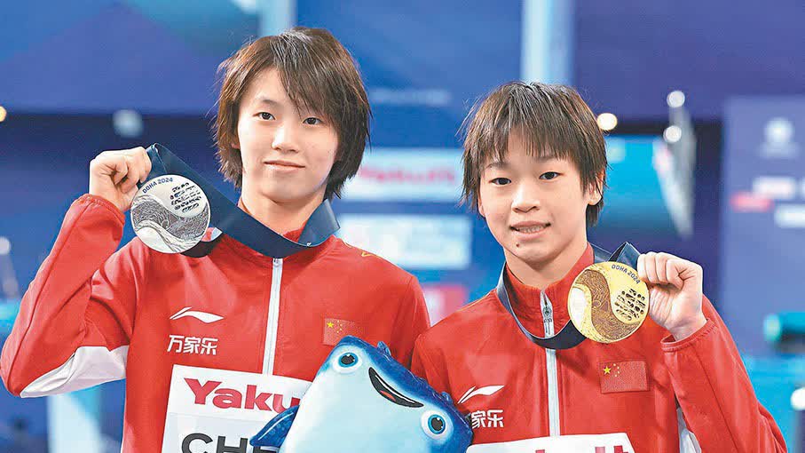 香港文匯報綜合報道,當地時間5日,在多哈游泳世錦賽跳水比賽中,中國隊的奧運冠軍全紅嬋奪得職業生涯首枚世錦賽女子單人10米台金牌,隊友陳芋汐摘得銀牌。