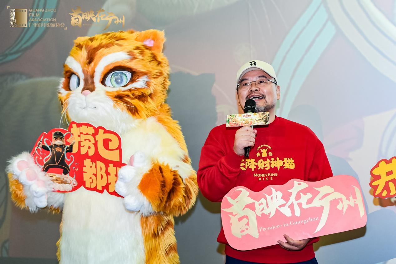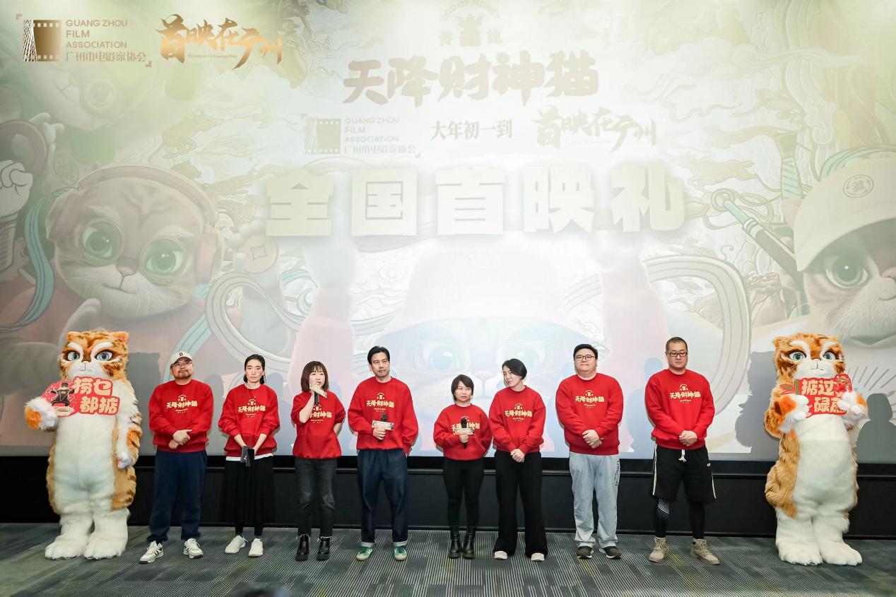 (大公文匯網 記者 胡若璋)沖入今年電影春節檔的國粵雙語版動畫電影《黃貔:天降財神貓》,昨日(2月6日)在廣州舉行首映禮。黃貔大貓也來加入招財納福隊伍,給民眾送上新年祝福。