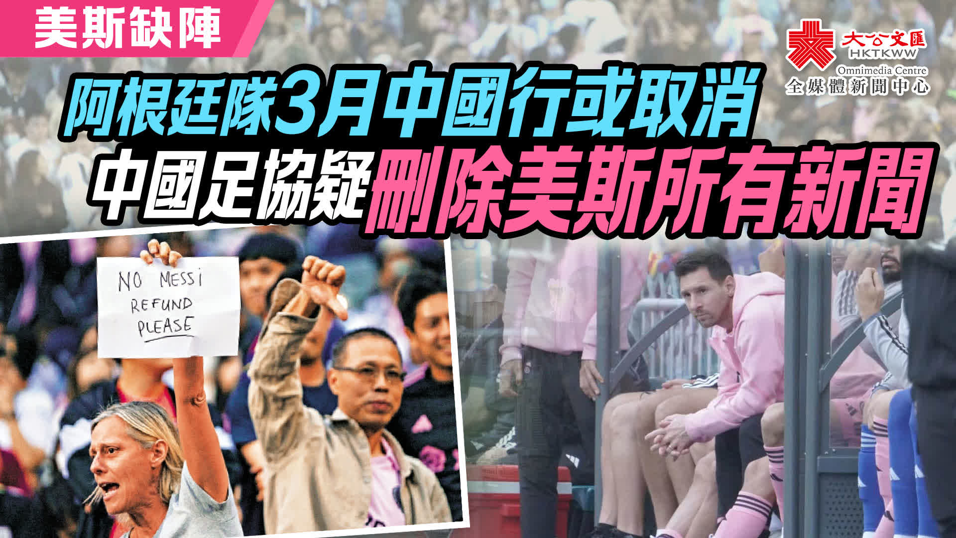 大公文匯全媒體報道:阿根廷球員美斯(又譯梅西)缺陣香港友誼賽事風波愈演愈烈,不僅香港特區政府多次發聲,要求主辦單位及國際邁阿密球隊交代事件,在內地不少球迷亦紛紛揚言抵制美斯,有內地體育媒體人稱,阿根廷3月份來華賽事未知能否成功舉辦。
