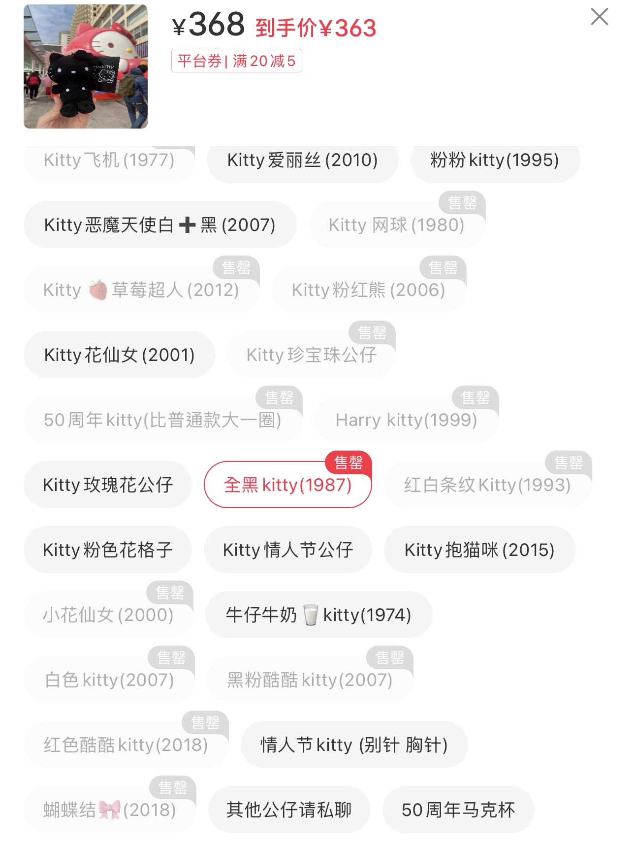 根據記者了解,50周年限定款Hello Kitty掛件原價均為198元港幣,在「小紅書」上的售價大多為匯率一比一再加20元代購費,即218元人民幣,但很多已經於線上店舖售罄。部分熱賣款式連日來不斷加價,平均為230至260元人民幣包郵費。不過,眼下最熱賣款式的售價已高達360多元人民幣,溢價已約一倍,卻依舊是「供不應求」。